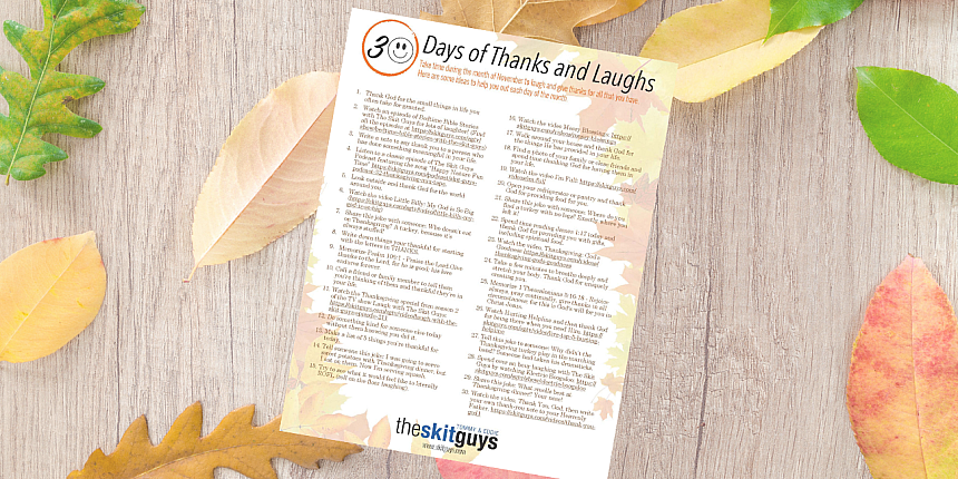 This November, take time every day to be thankful and to laugh. Remember, in 1 Thessalonians 5:18 God calls us to be thankful in everything. We believe laughter is good medicine, so when you combine thankfulness and laughs, you can't go wrong!