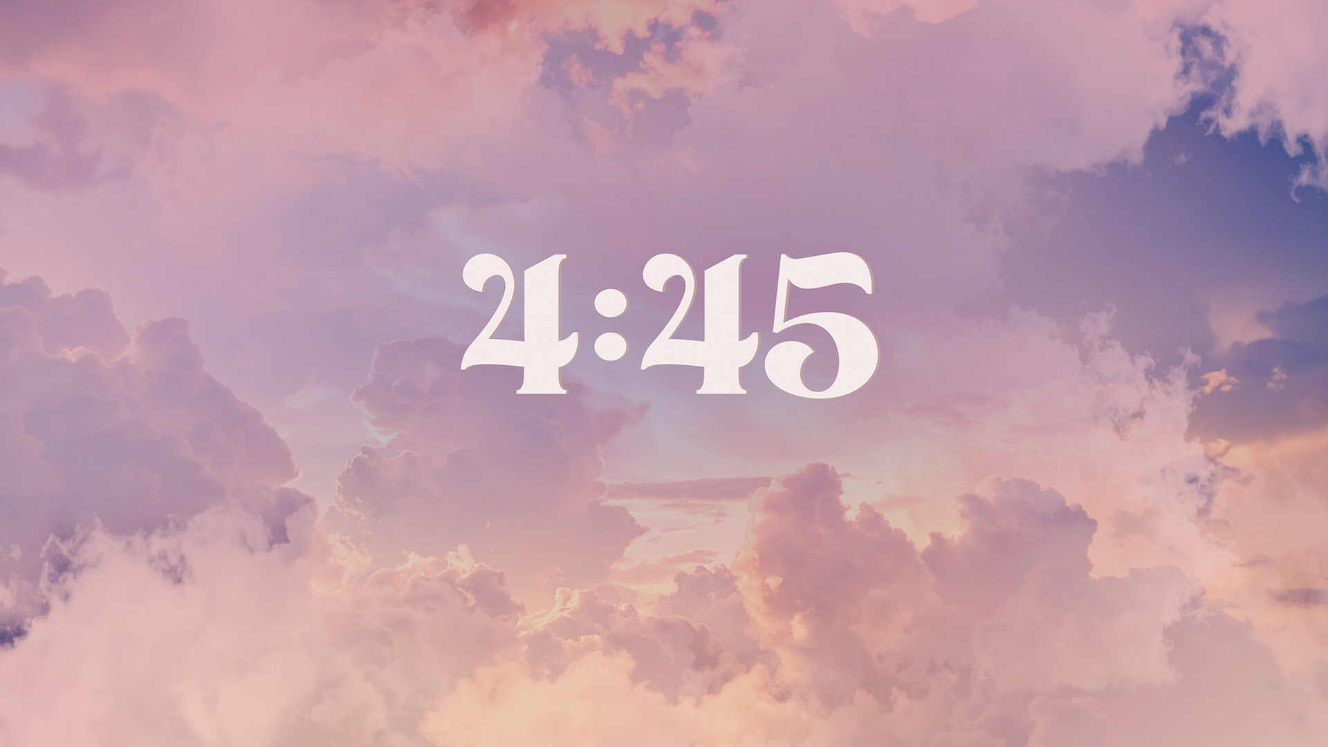 A beautiful heavenly minimal countdown pre-service timer over a sky scene showcasing soft, fluffy clouds bathed in warm sunset hues. The sun illuminates the horizon of clouds, creating a dreamlike heavenly atmosphere.