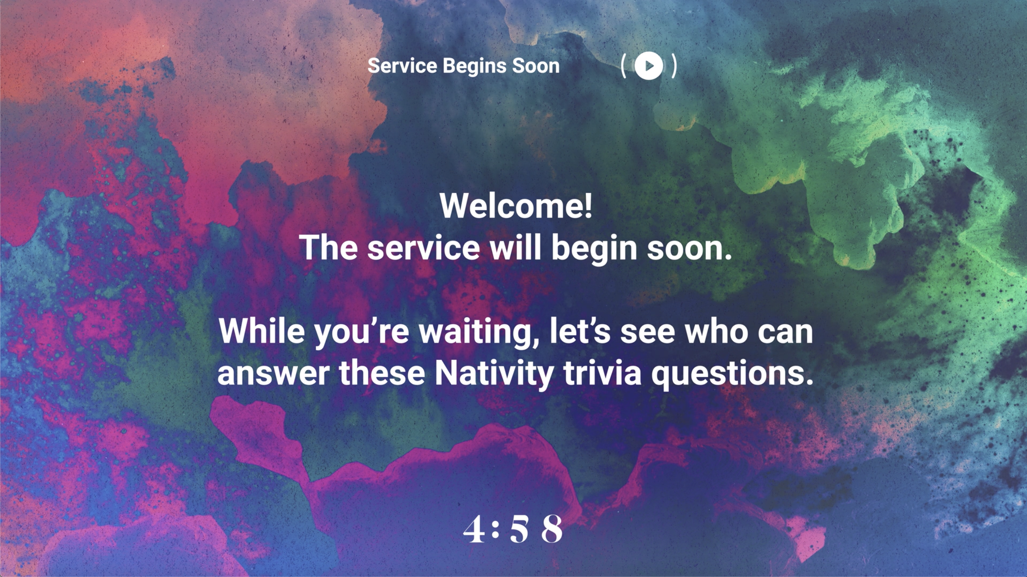 - Include this video or background in your church's live stream or pre-recorded service.
