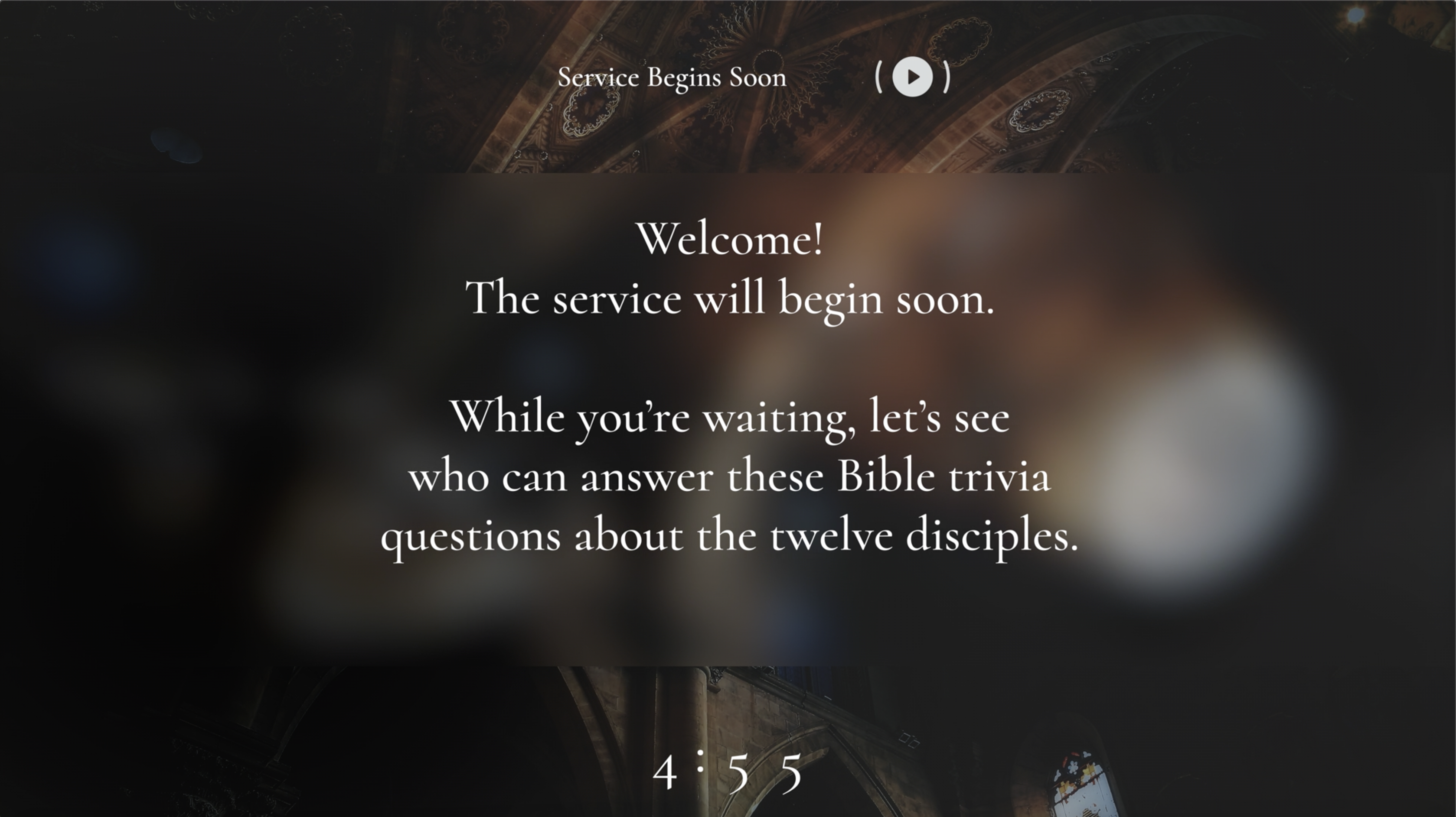 - Include this video or background in your church's live stream or pre-recorded service.