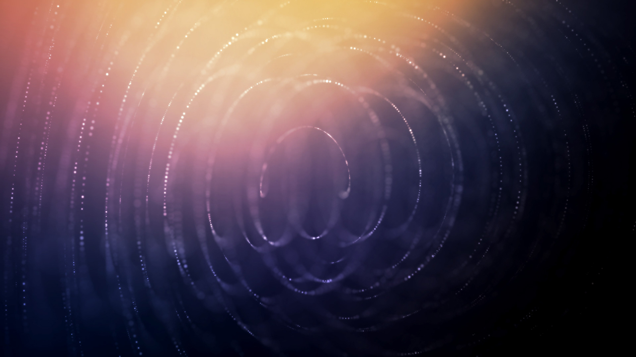 Abstract particle worship background animation loop with a spiral particle form rotating over a colorful ambient background environment.