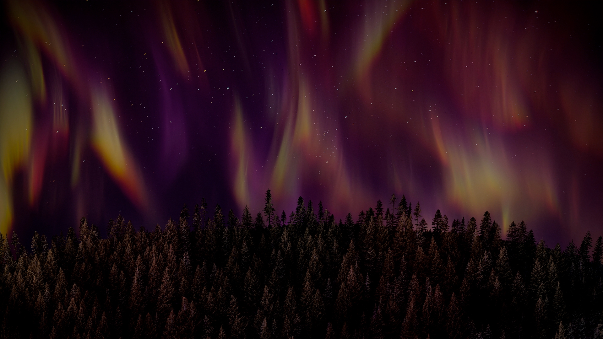 Aurora Glow worship background loop animation of the northern lights over forest backdrop.