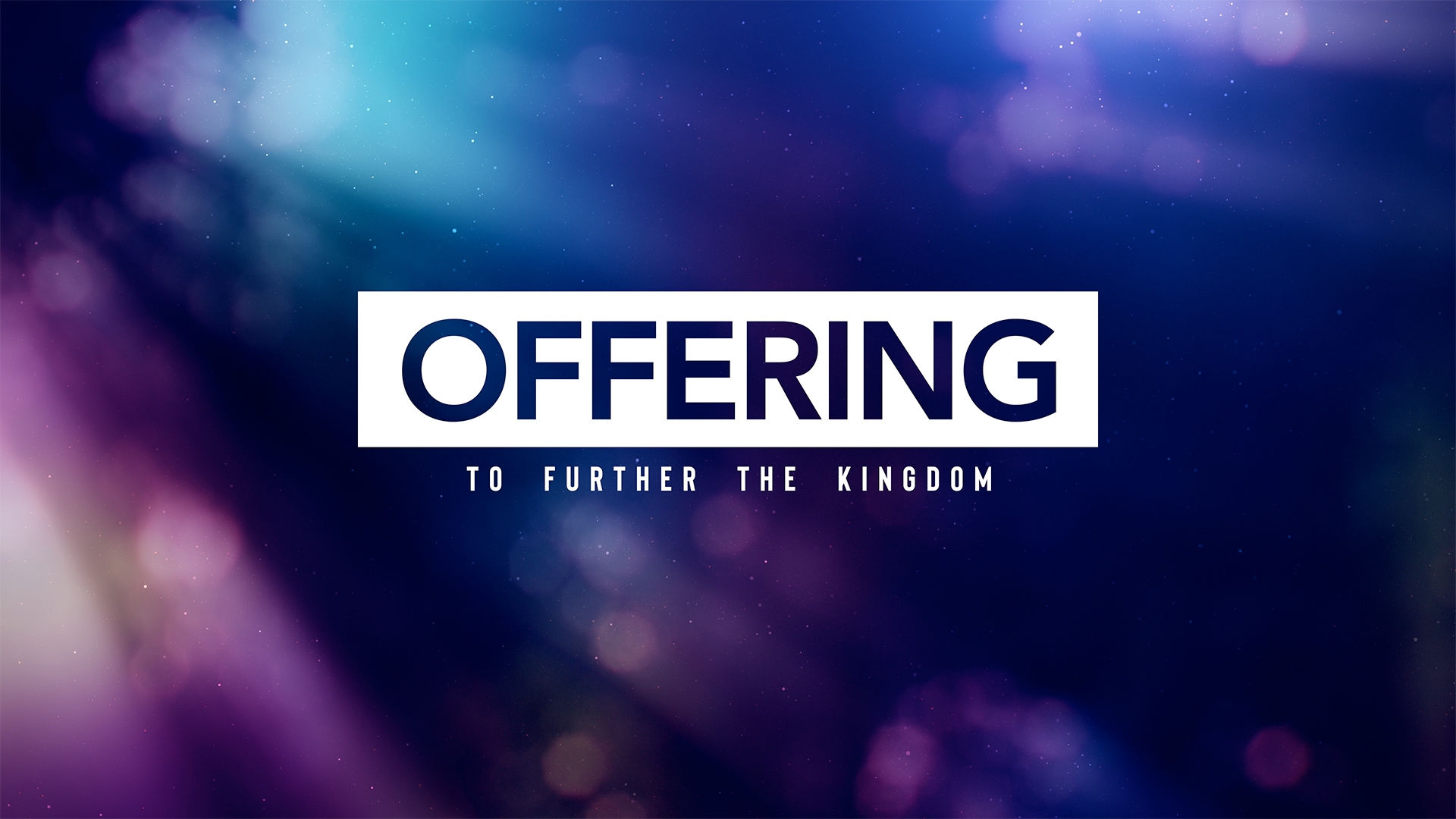 Bokeh glow offering and tithes title over loop of filmed bokeh footage with added vibrant light rays and particles.