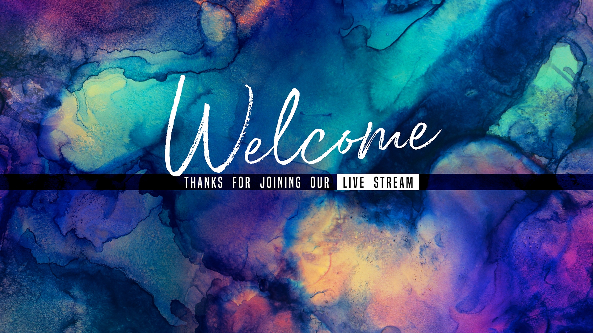 Canvas stream welcome title motion for online church over painted canvas animated art with vibrant colorful flowing textures photographed from real custom painted artwork including warm fall colors.