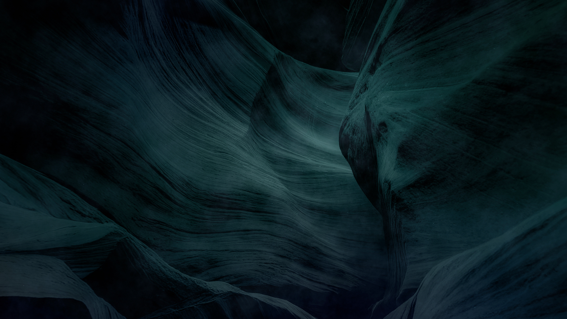Worship background loop of rising up through dark cinematic canyon walls, showcasing smooth, layered rock formations in varying shades of color and soft light filtering through, creating ethereal shadows and highlights.