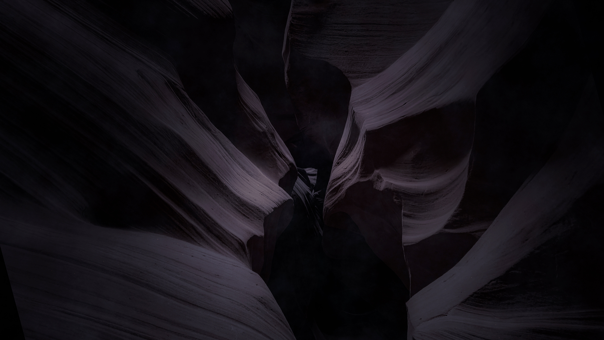 Worship background loop of rising up through dark cinematic canyon walls, showcasing smooth, layered rock formations in varying shades of color and soft light filtering through, creating ethereal shadows and highlights.