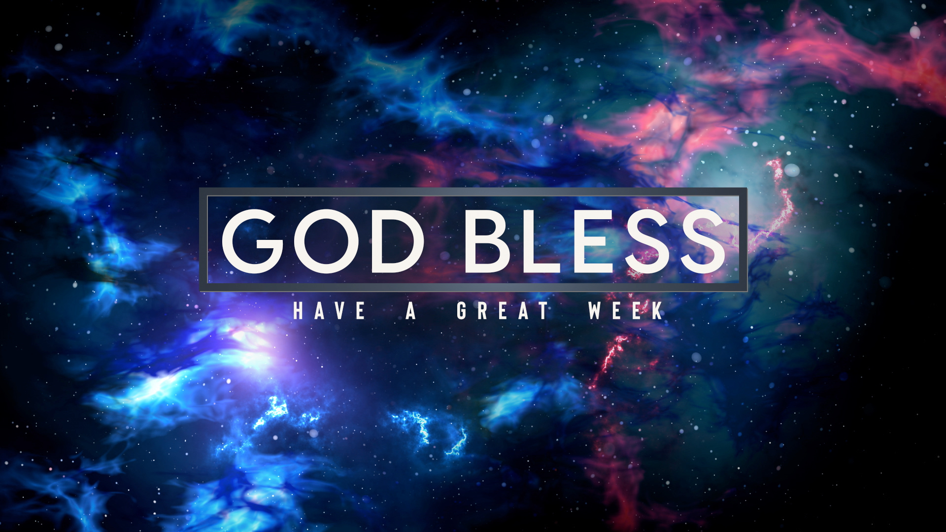 Space Nebula service close title animation over heavenly space imagery showing the wonder of creation with vibrant moving nebula clouds and moving stars.