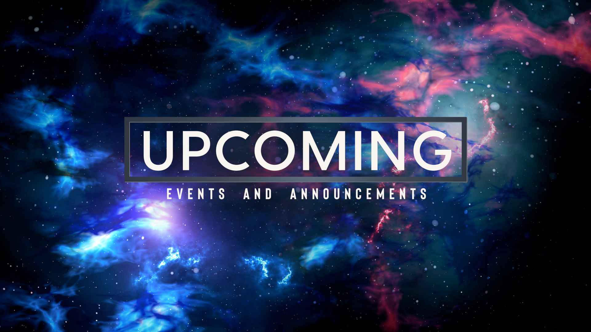 Space Nebula upcoming events and announcements Title animation over heavenly space imagery showing the wonder of creation with vibrant moving nebula clouds and moving stars.