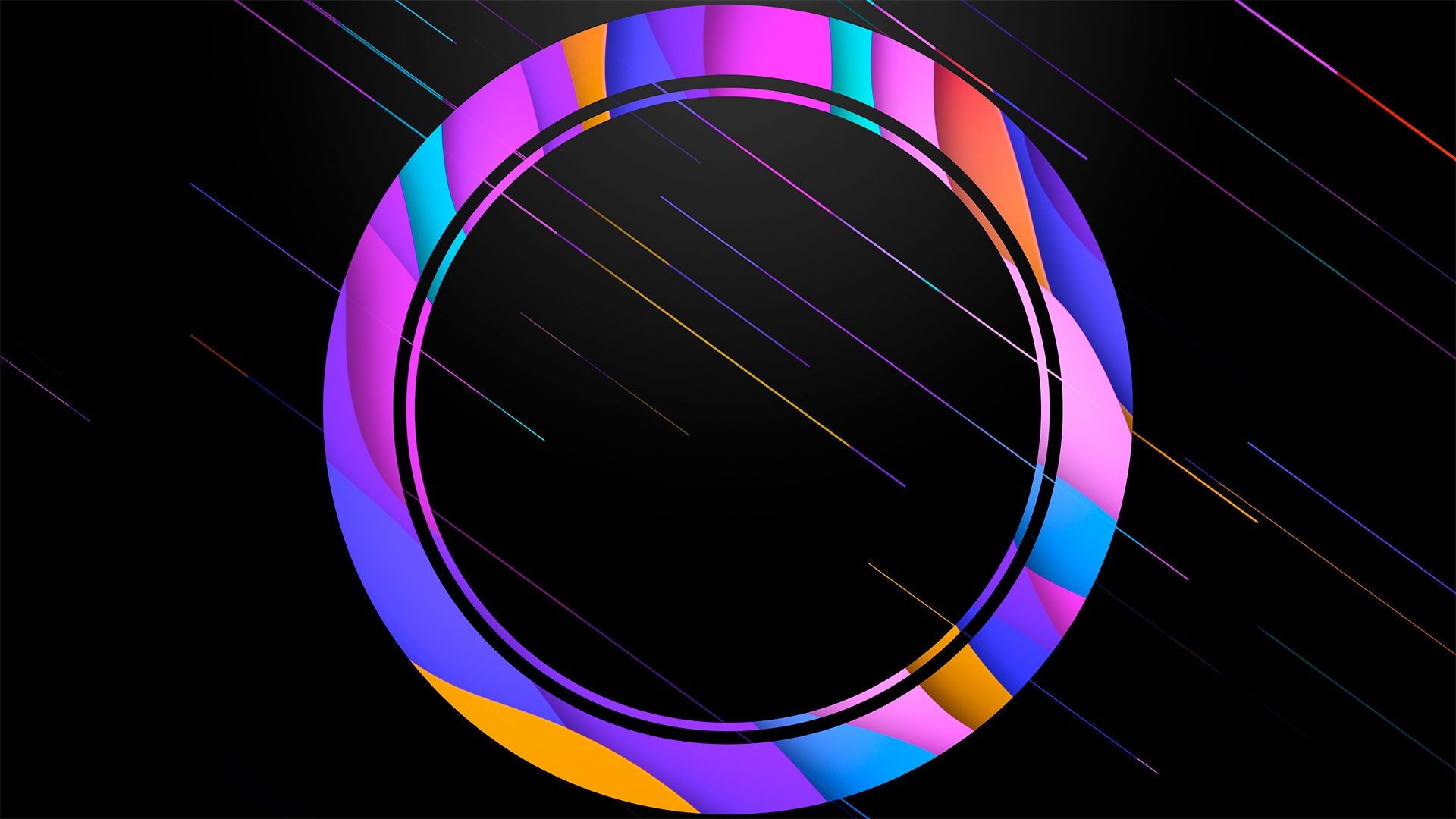 Colorful line particles worship background with geometric cutouts.