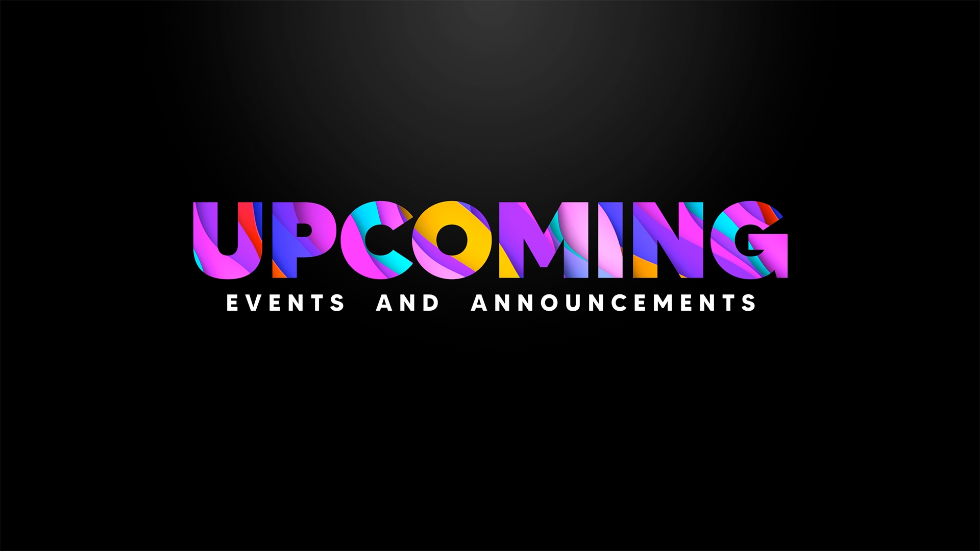 Colorful cutout style upcoming events and announcements title motion.