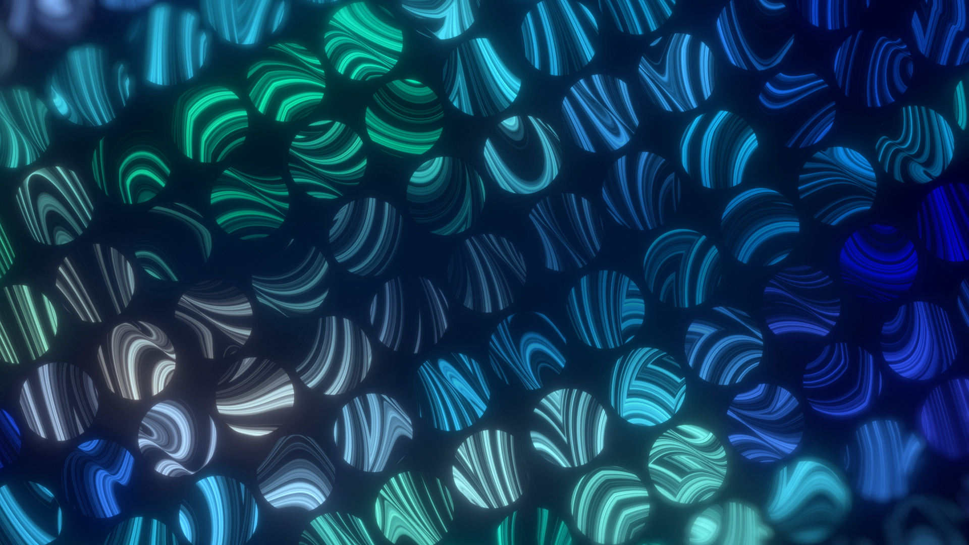 Circular LED fractal worship background with embedded curved fractal patterns and bright high contrast colors against a dark backdrop.