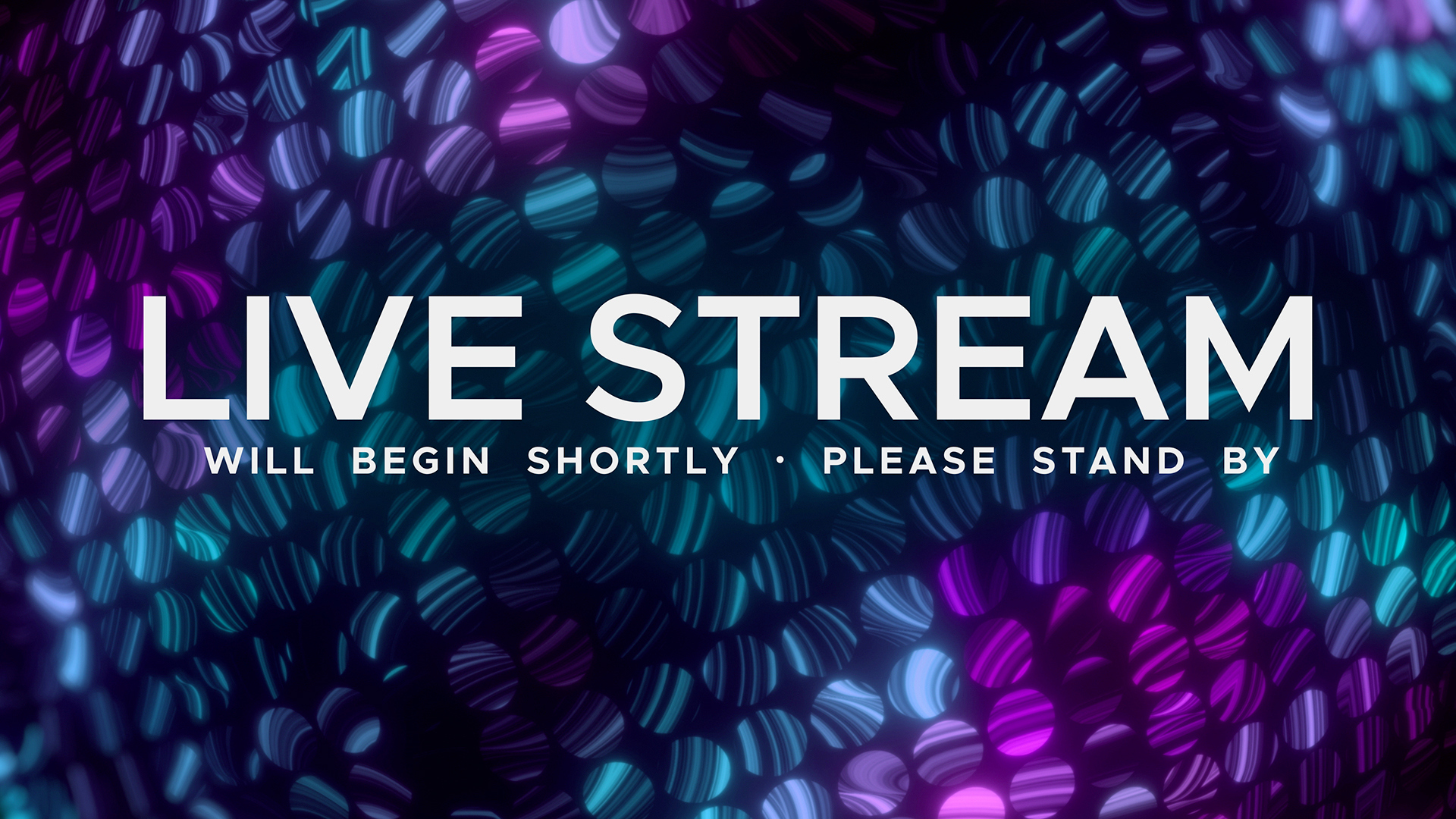 Colorful LED live stream title motion for online church over circular LED fractal background with embedded curved fractal patterns and bright high contrast colors against a dark backdrop.