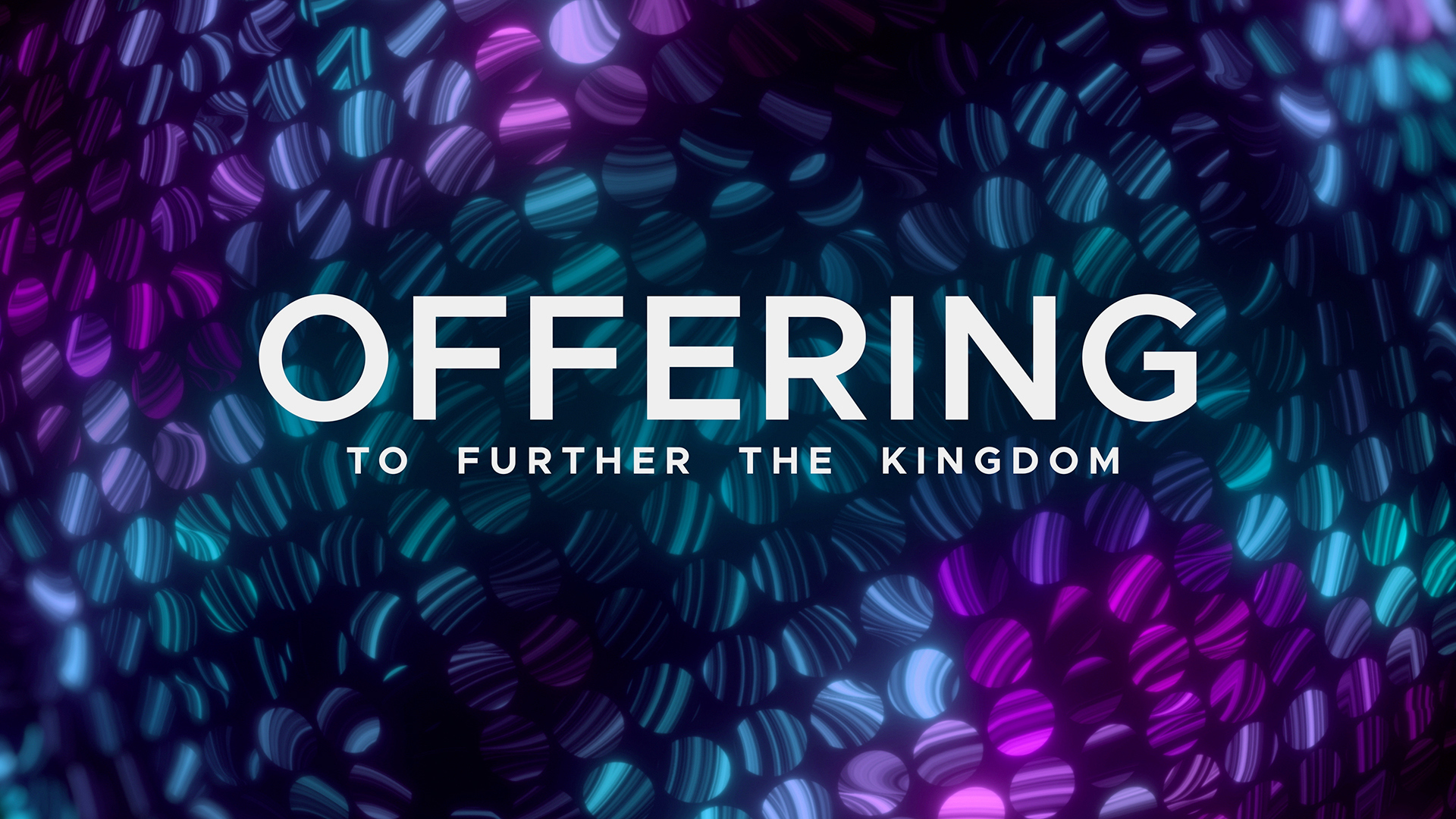 Colorful LED offering and tithes title motion over circular LED fractal background with embedded curved fractal patterns and bright high contrast colors against a dark backdrop.