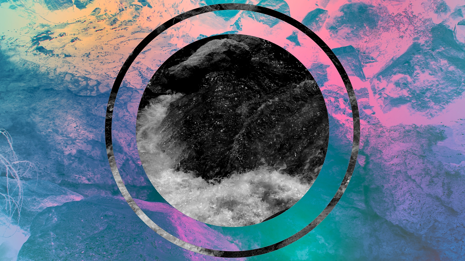 Worship background of river running through el dorado canyon state park with colorful geometric overlay.