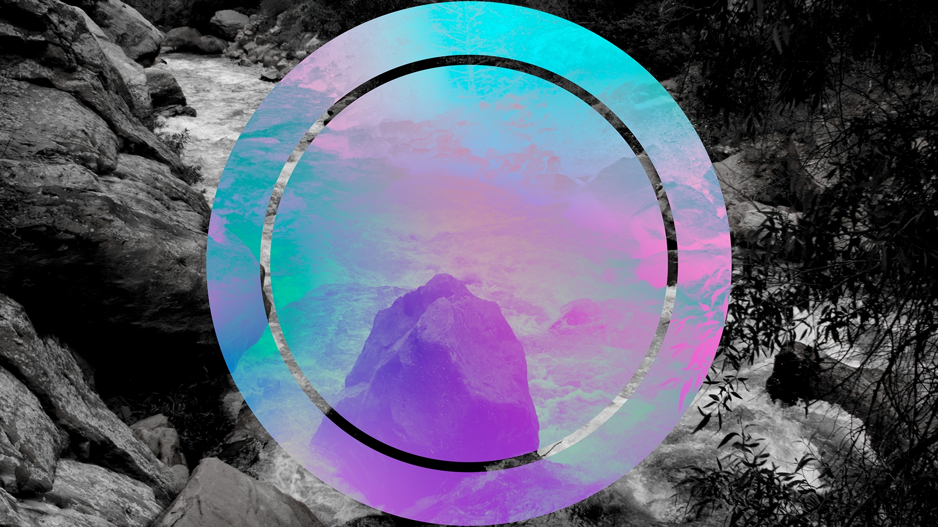 Worship background of river running through el dorado canyon state park with colorful geometric overlay.