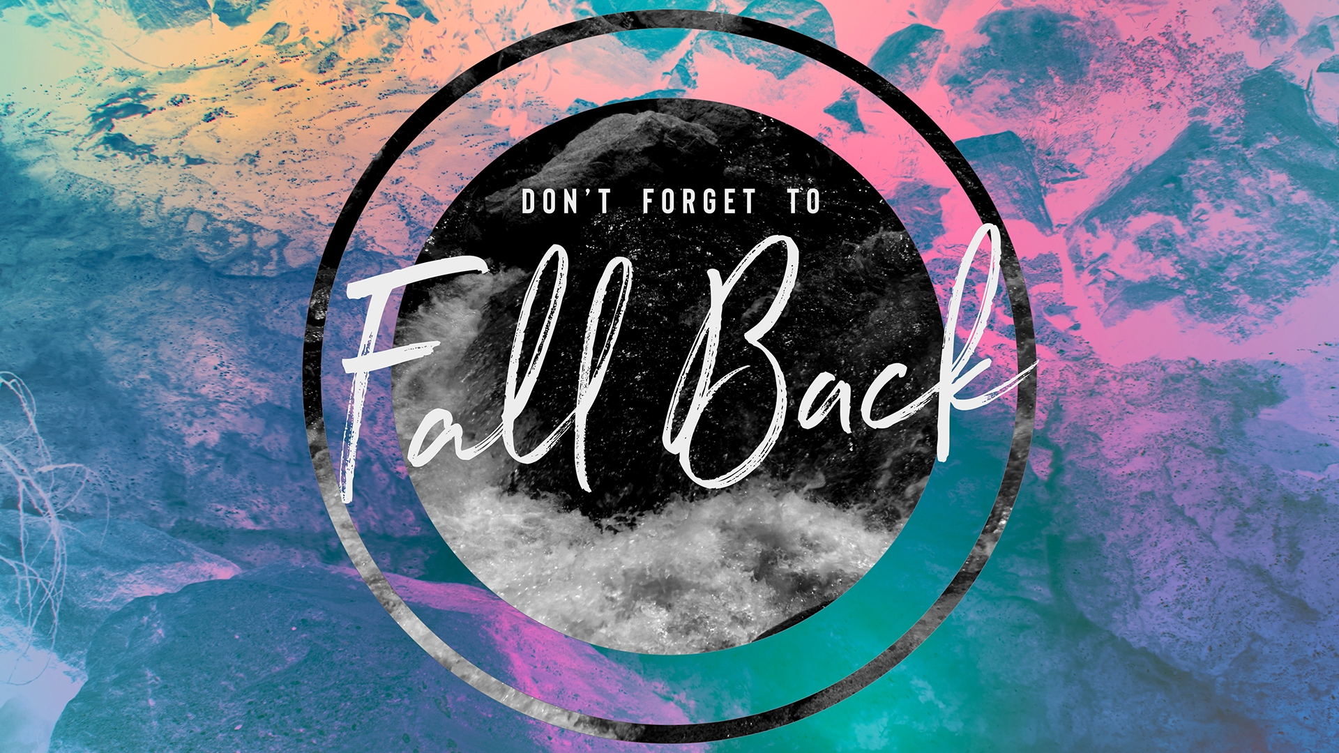 El dorado fall back time change title motion over river running through el dorado canyon state park with colorful geometric overlay.