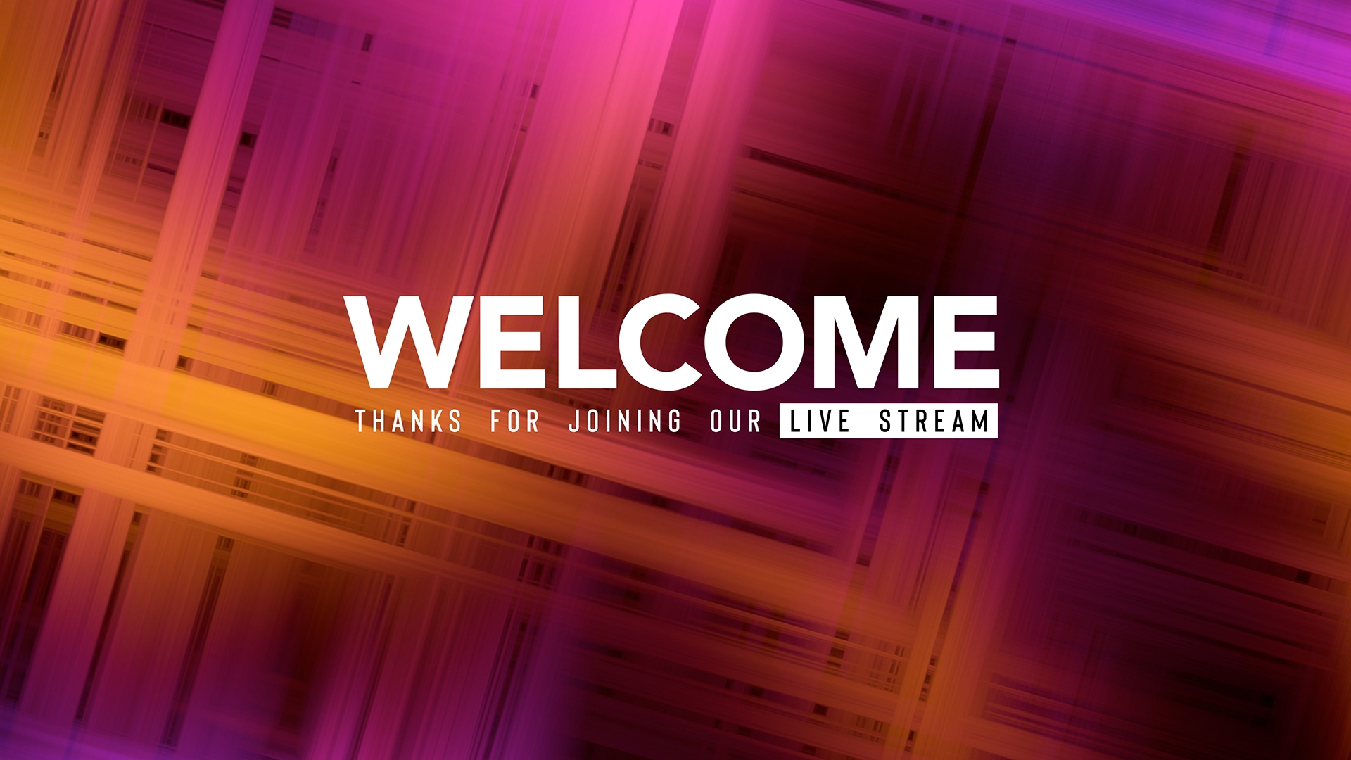Glow lines stream welcome title animation for online church over abstract background loop of colorful intricate glowing crossed line patterns.