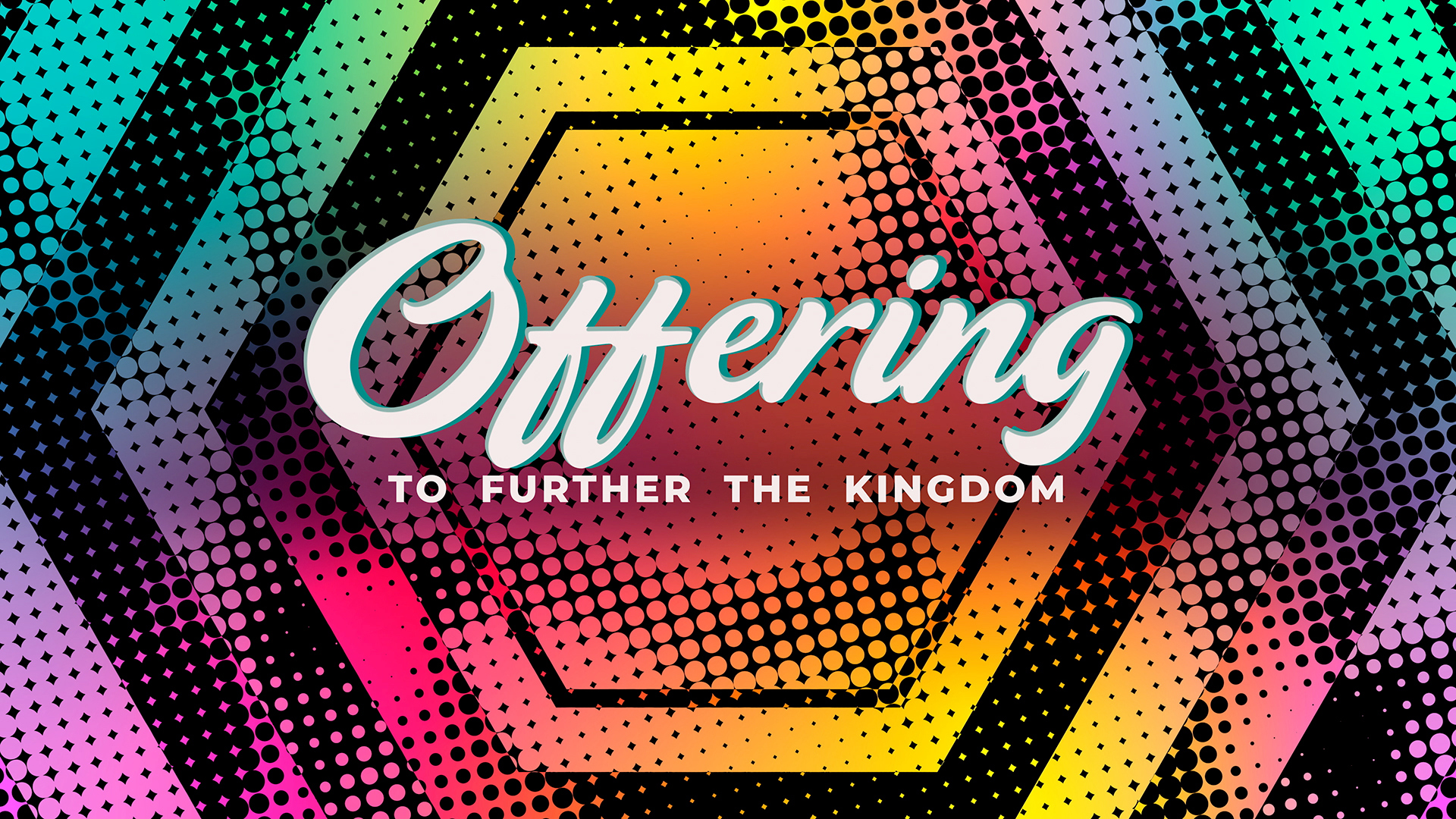A vibrant summer offering and tithes title motion of halftones and inverted halftones in subtle directional movement and fractal variance blended with bright colorful gradients and composed in geometric shapes.