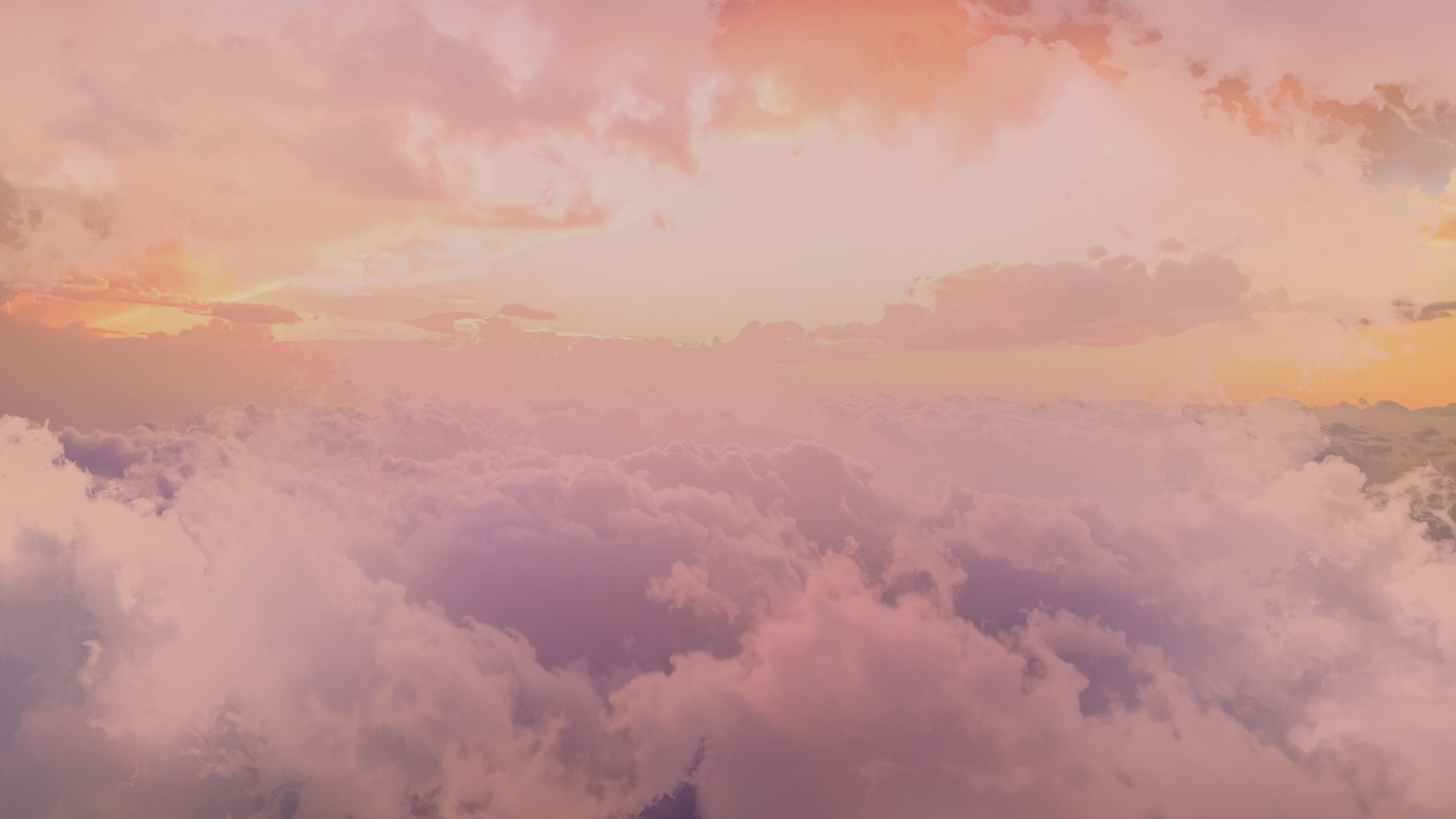 A beautiful heavenly sky scene worship background showcasing soft, fluffy clouds bathed in warm sunset hues. The sun illuminates the horizon of clouds, creating a dreamlike heavenly atmosphere.