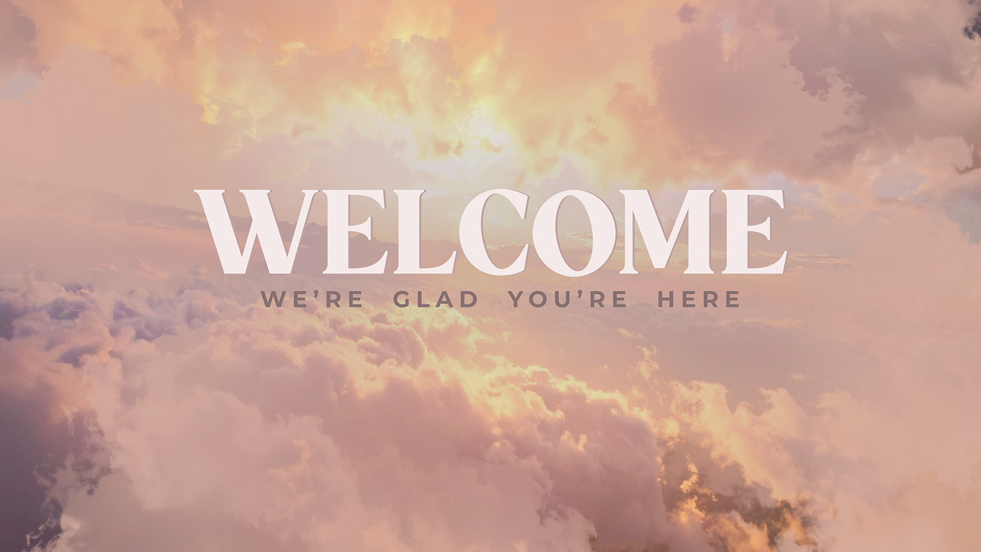 A beautiful heavenly welcome title motion over a sky scene showcasing soft, fluffy clouds bathed in warm sunset hues. The sun illuminates the horizon of clouds, creating a dreamlike heavenly atmosphere.