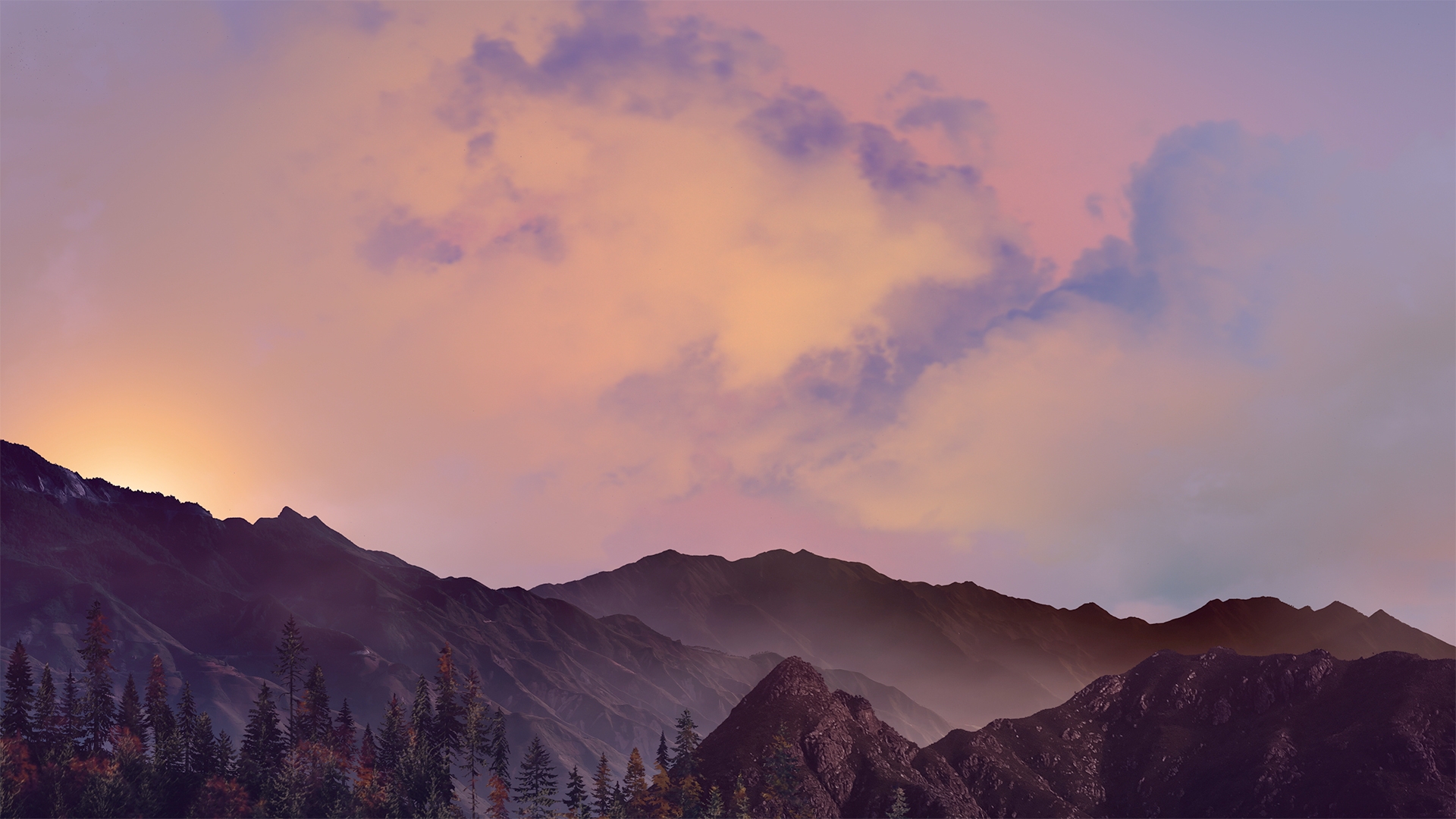 Horizon fall worship background loop of moving clouds and fog over dreamy autumn landscape.