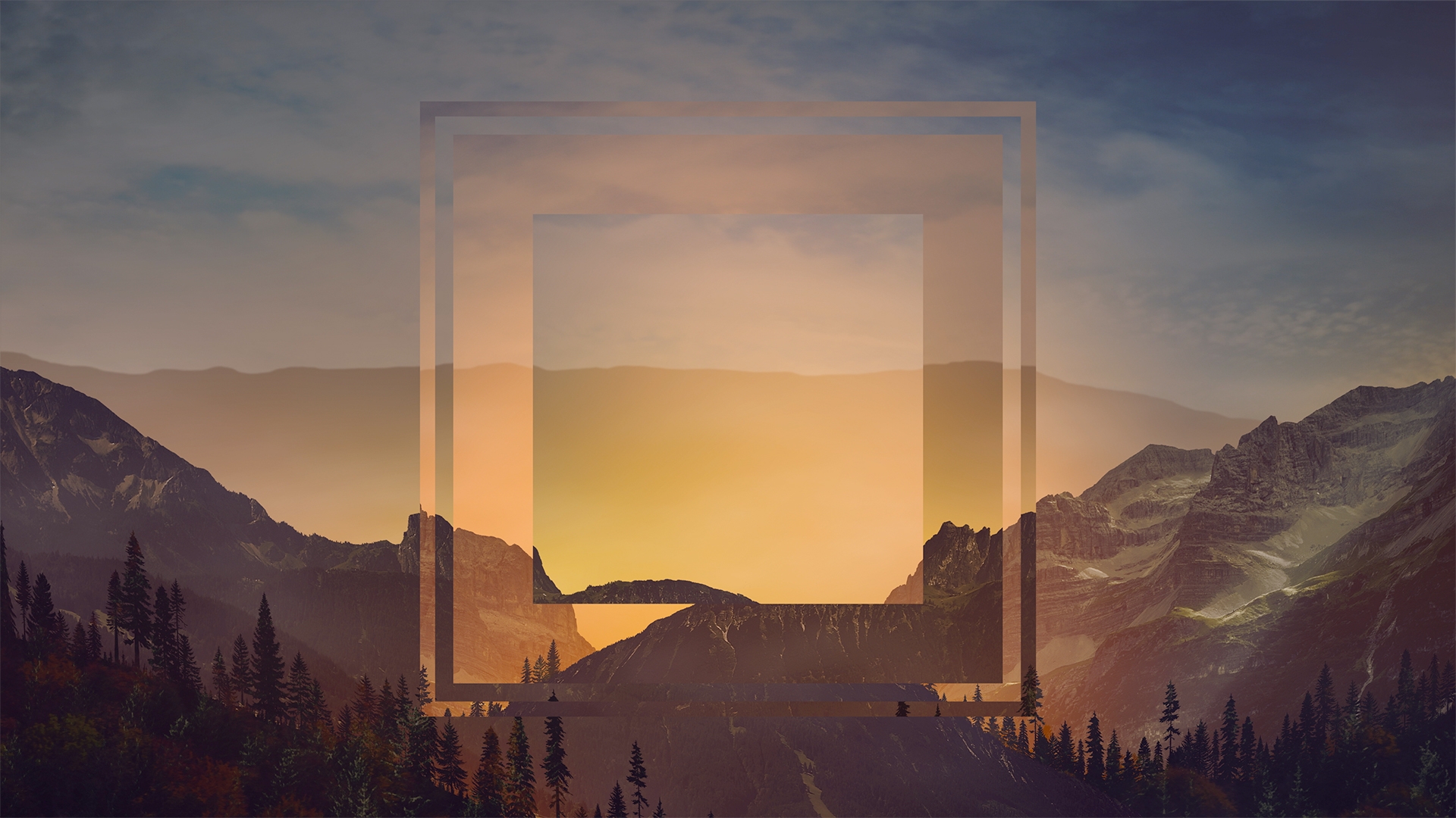 Horizon fall worship background loop of moving clouds and fog over dreamy autumn landscape with modern geometric overlay.