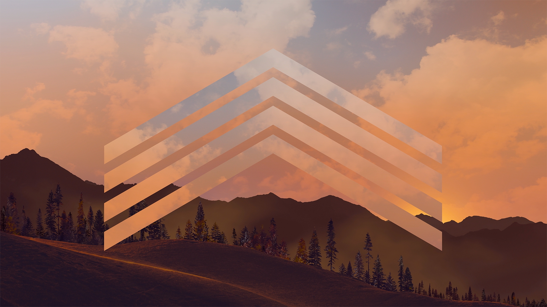 Horizon fall worship background loop of moving clouds and fog over dreamy autumn landscape with modern geometric overlay.