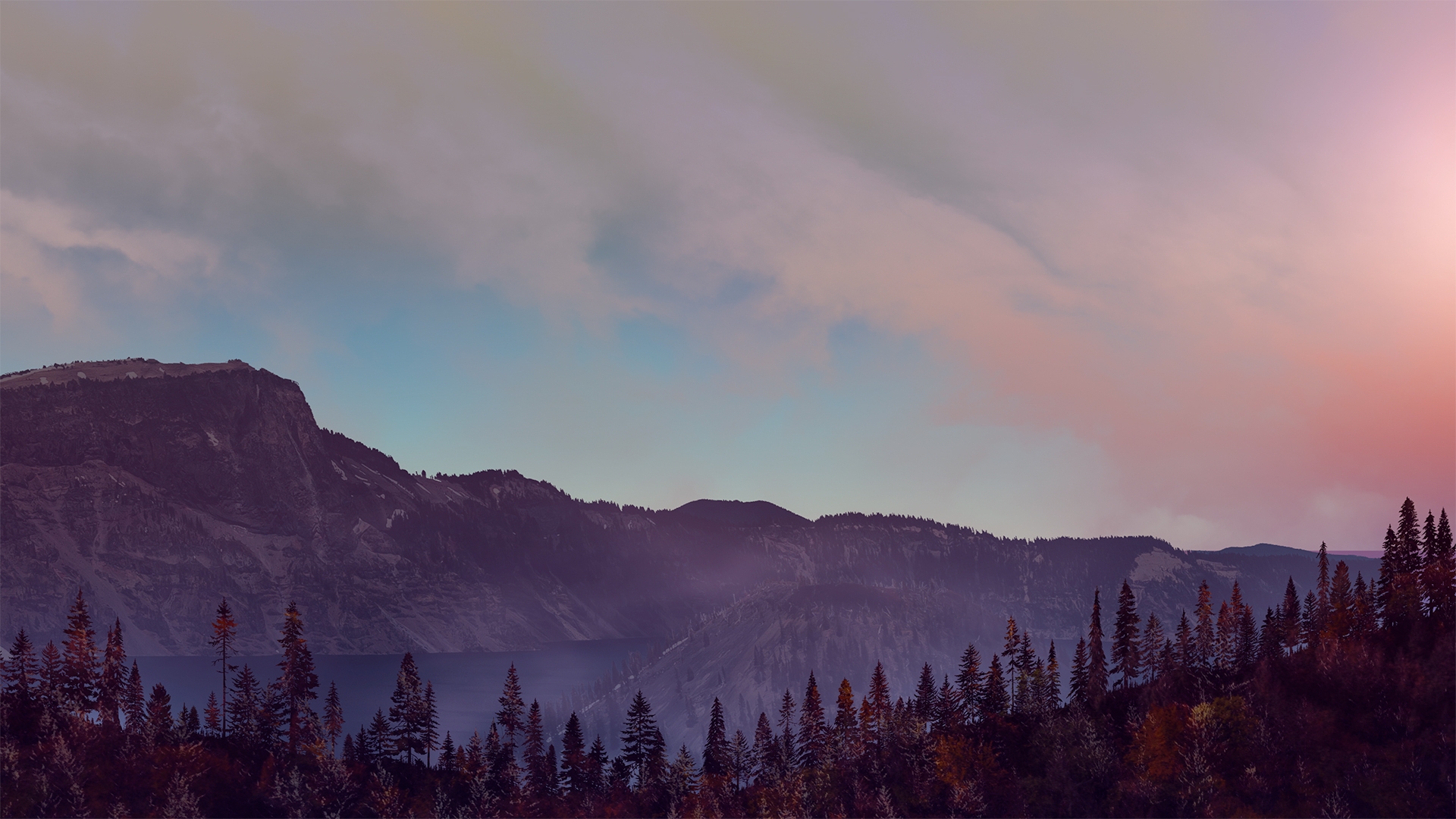 Horizon fall worship background loop of moving clouds and fog over dreamy autumn landscape.