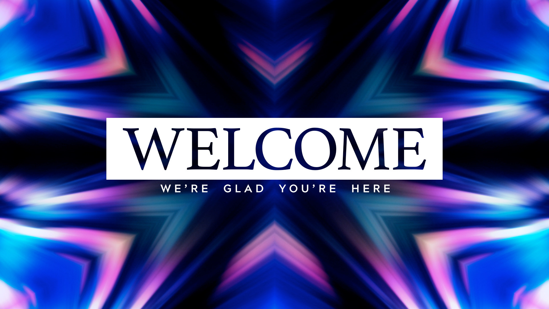 Kaleidoscope welcome title animation over vibrant colorful waves reflected in geometric angles resembling a tie-dye style.