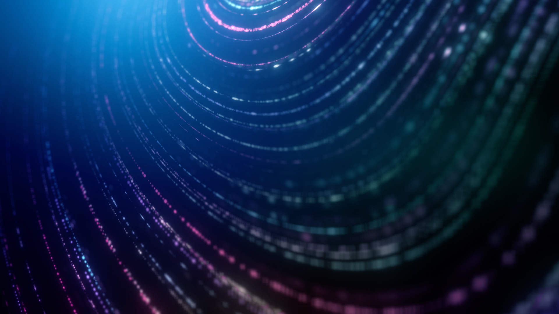 Abstract intricate particle chains in spiral formation with depth of field, subtle light variation and rotation.
