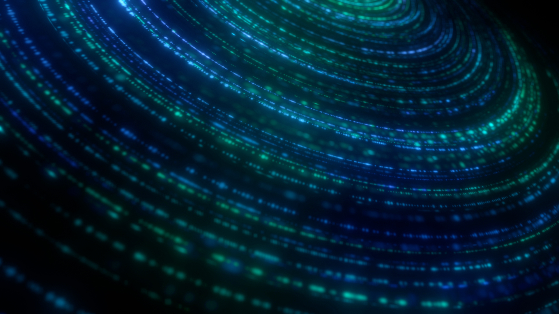 Abstract intricate particle chains in spiral formation with depth of field, subtle light variation and rotation.