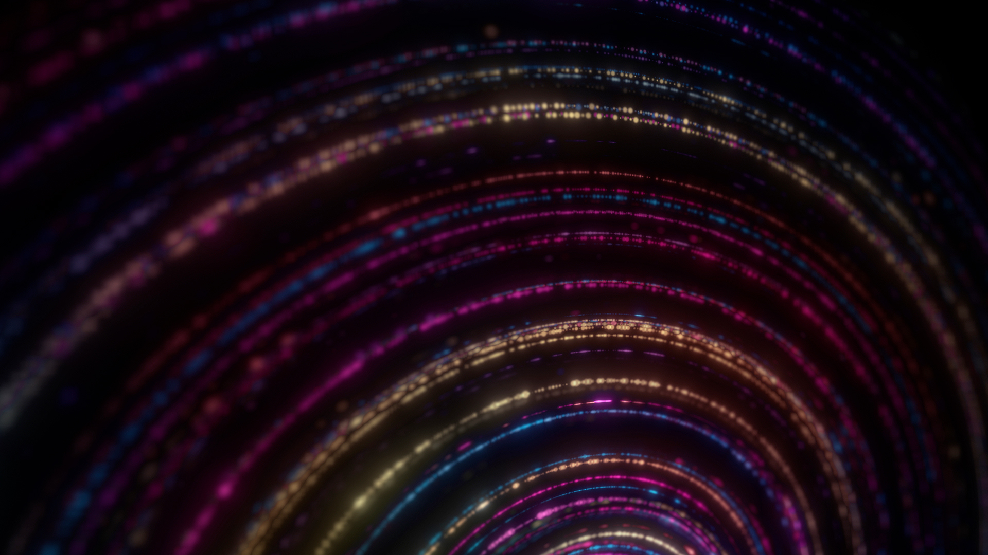 Abstract intricate particle chains in spiral formation with depth of field, subtle light variation and rotation.