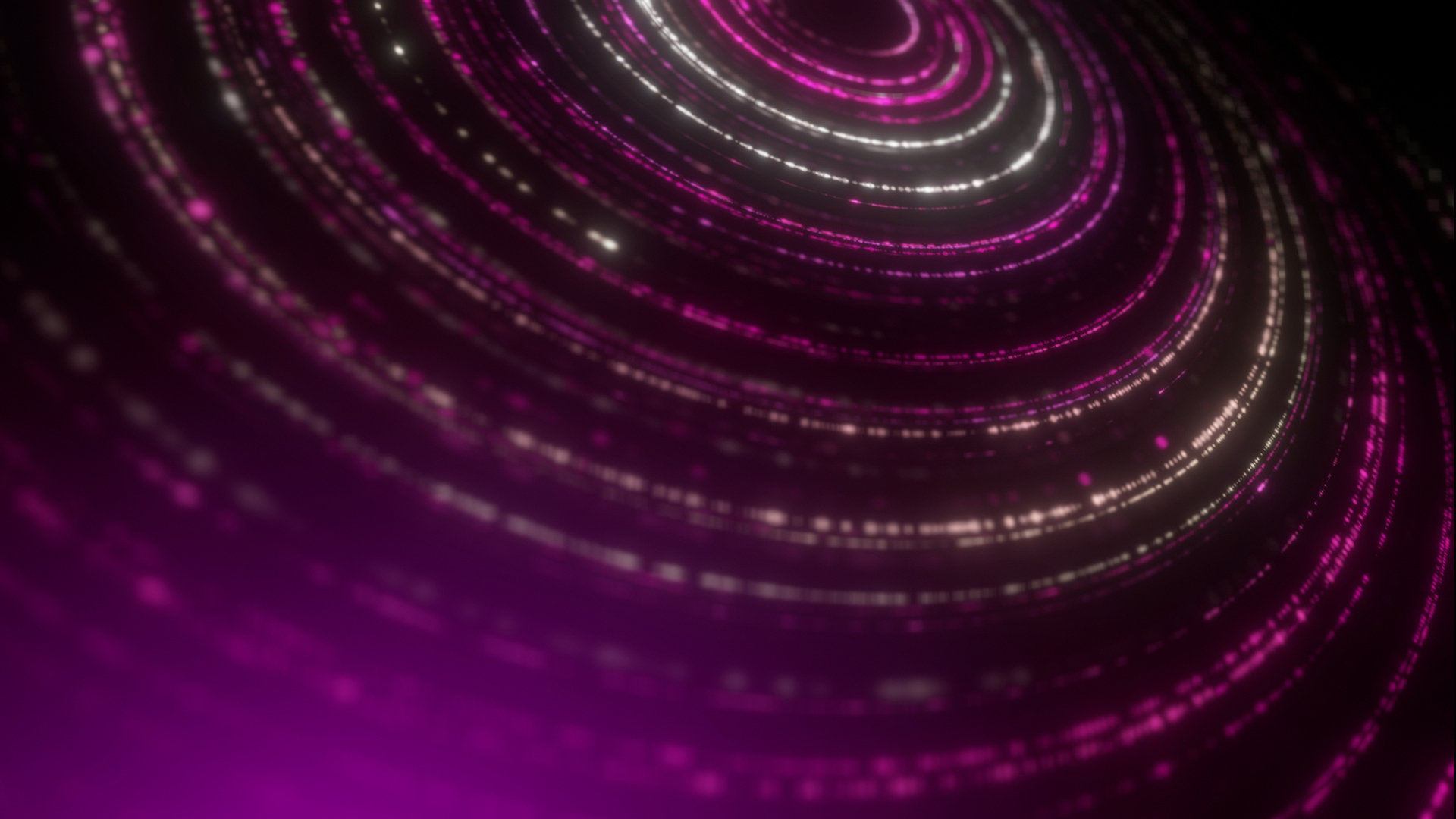 Abstract intricate particle chains in spiral formation with depth of field, subtle light variation and rotation.