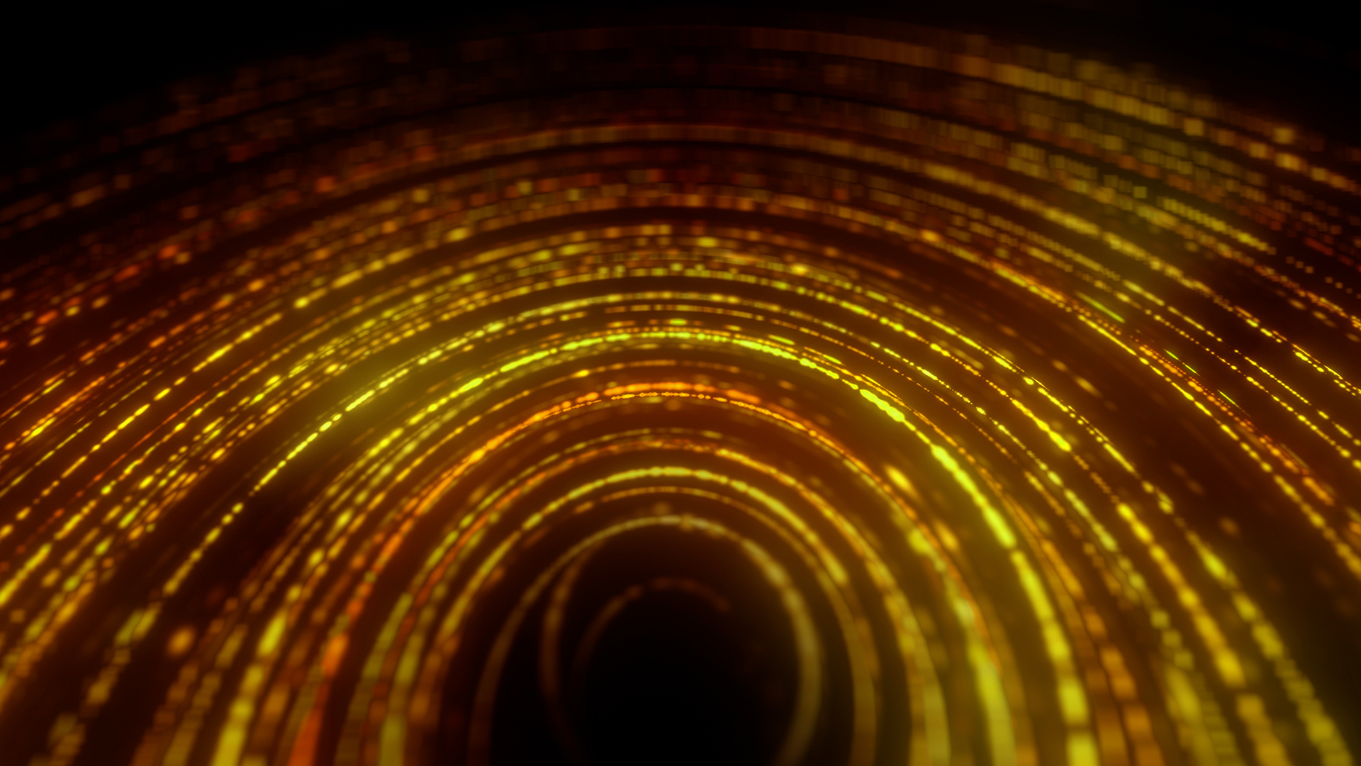 Abstract intricate particle chains in spiral formation with depth of field, subtle light variation and rotation.