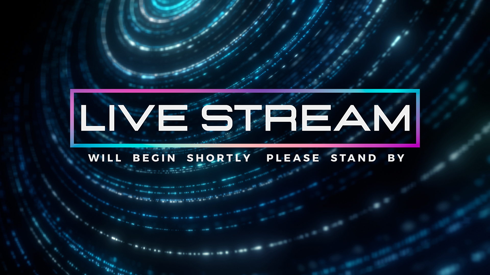 Abstract particle live stream motion title for online church over intricate particle chains in spiral formation with depth of field, subtle light variation and rotation.