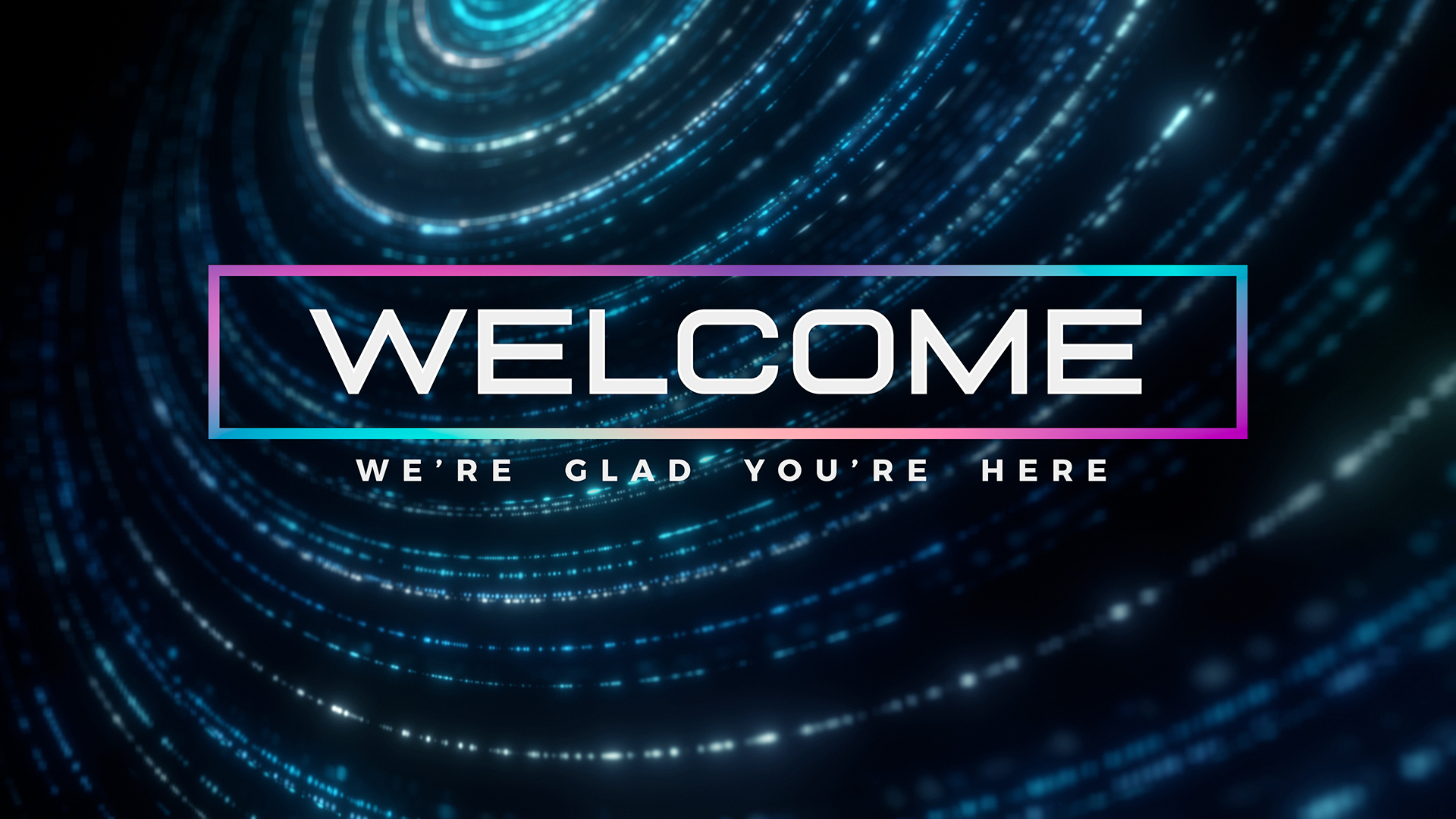 Abstract particle welcome motion title over intricate particle chains in spiral formation with depth of field, subtle light variation and rotation.