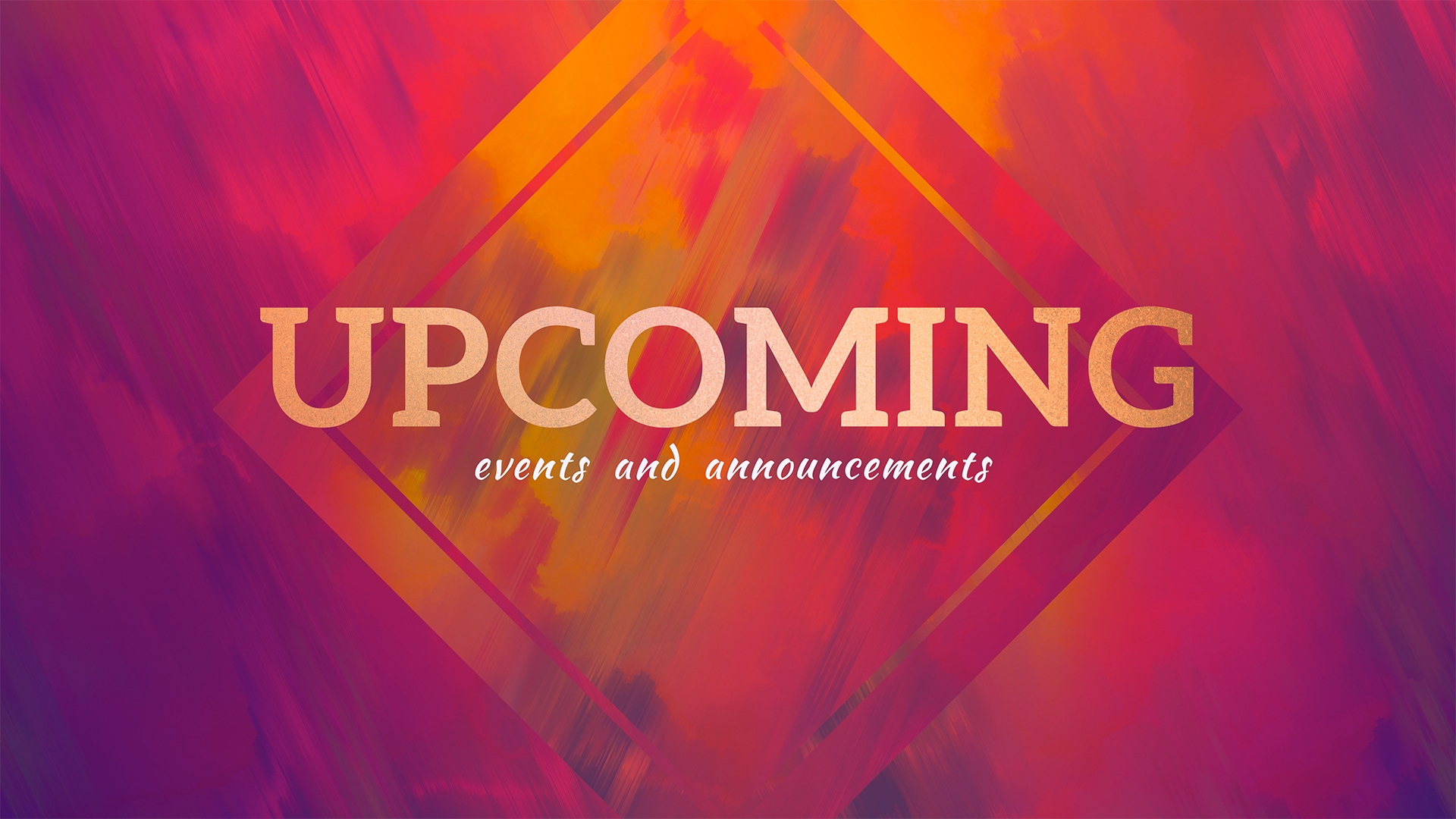 Painted upcoming events and announcements title animation over pixel sorted fall background with vibrant colors in subtle hand drawn abstract style.