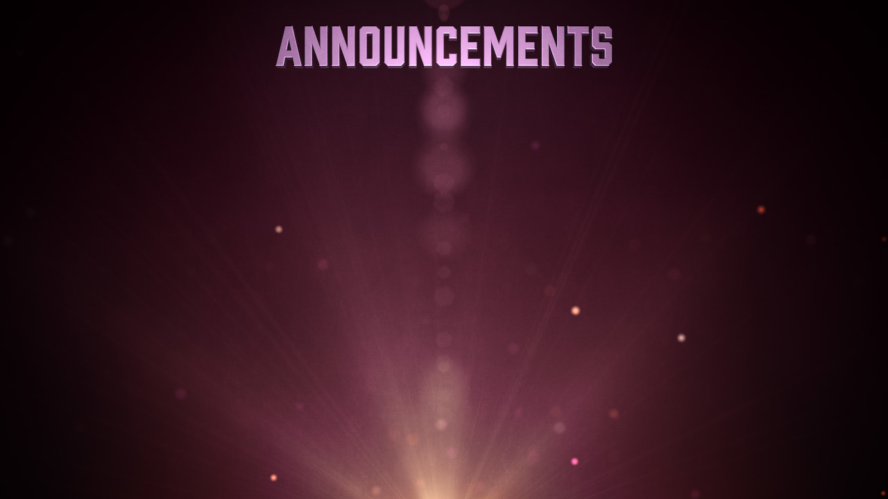 This announcements background features glowing particles and shifting light rays, with plenty of room for information and upcoming events. Hues of pink and orange dominate this worship background.