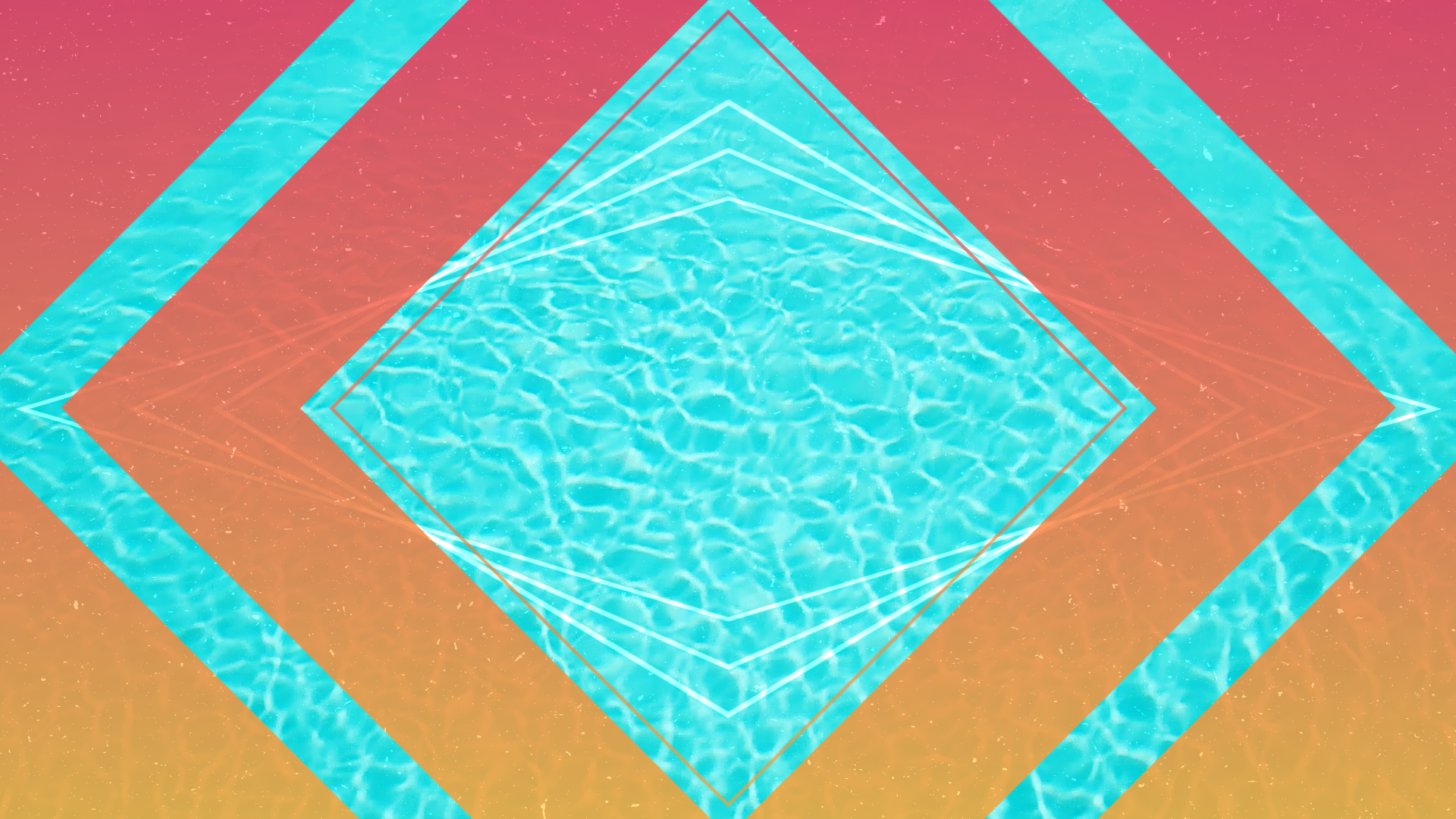 A summer themed motion background featuring rippling blue water and orange and pink geometric design.