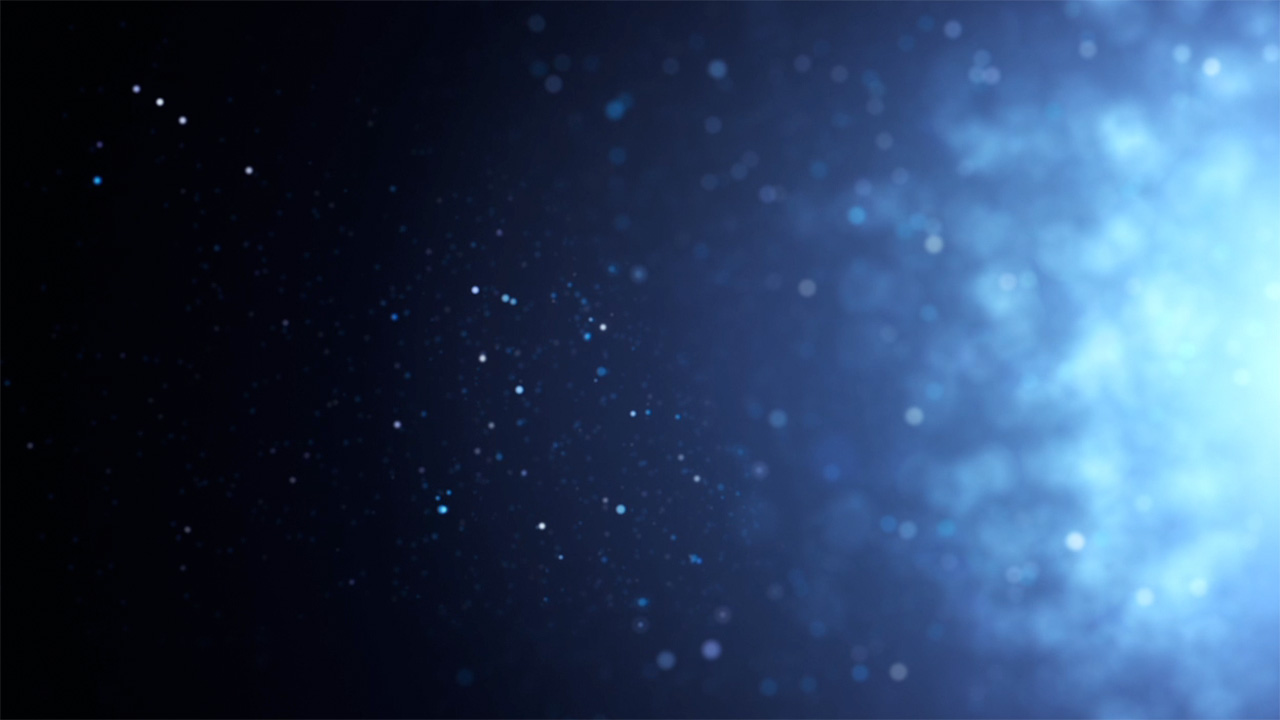 Particle animation worship loop with depth of field and ambient glowing light background.