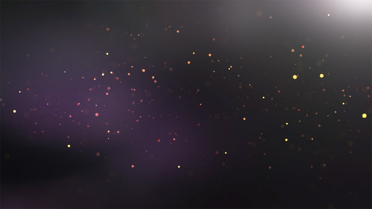 Particle animation worship loop with depth of field and ambient glowing light background.