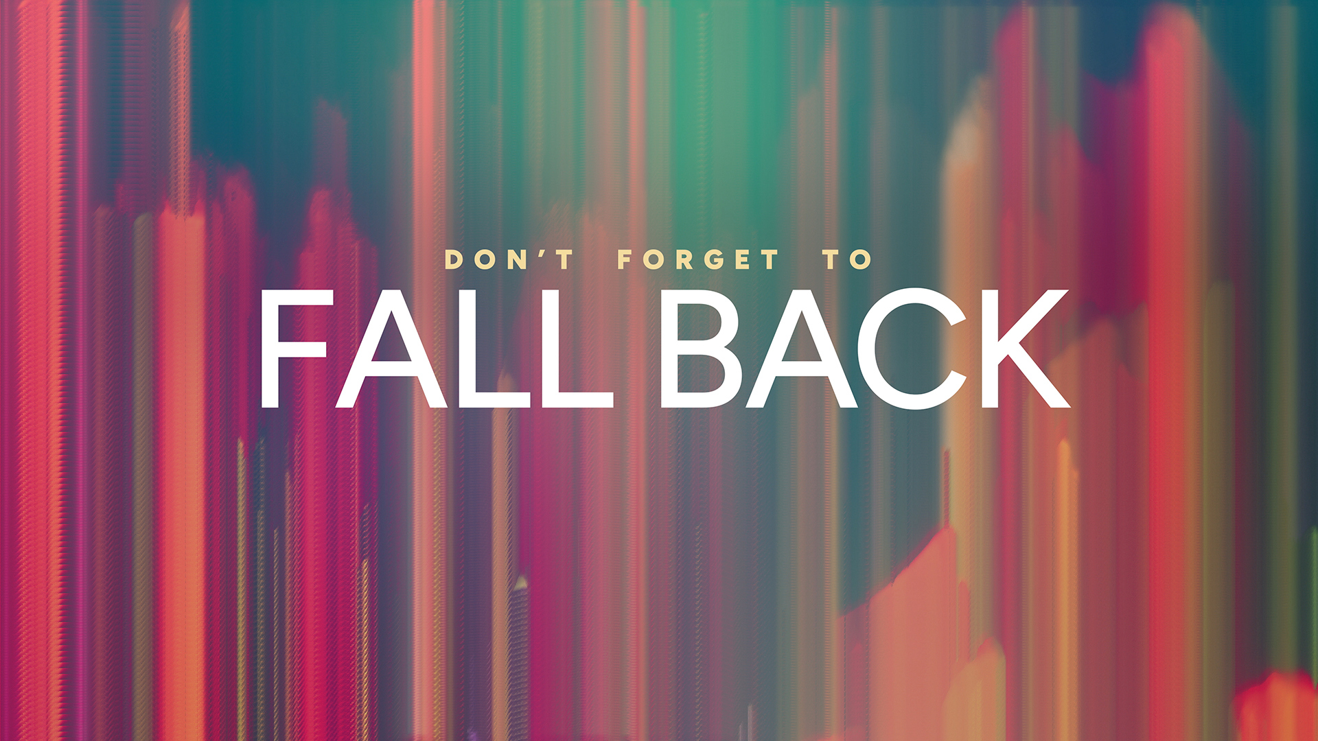 A vibrant, abstract digital fall back time change title motion with vertical lines and wavy patterns in a gradient of colors.