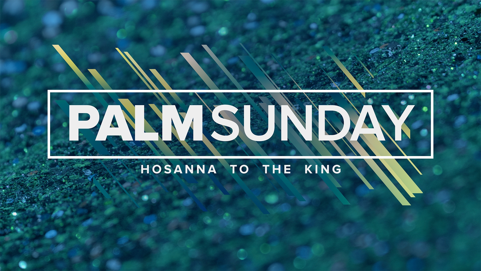 Sapphire Palm Sunday title motion over sparkling macro footage filmed in studio colorized and stylized in Easter and spring colors.
