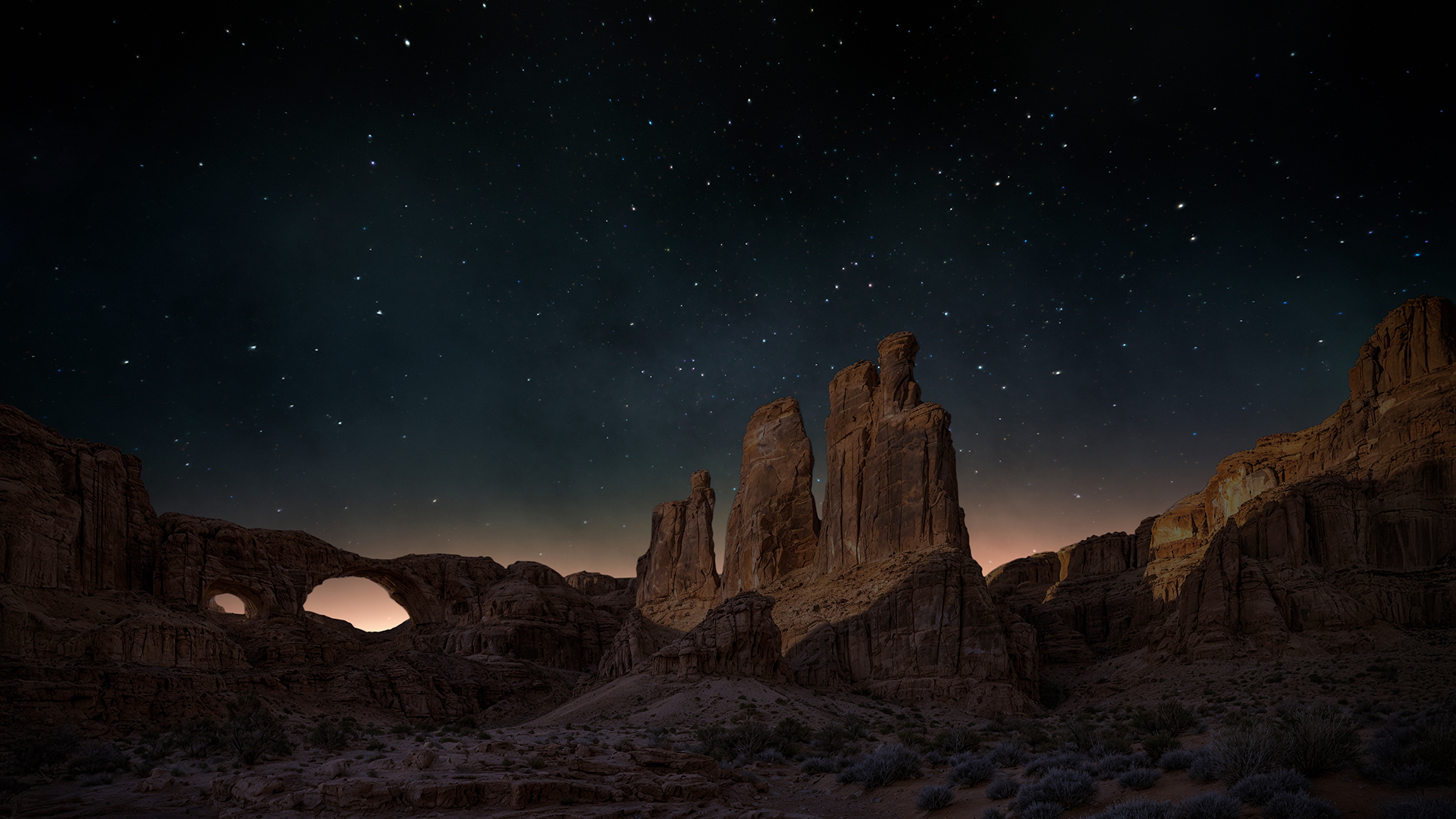 Worship background of beautiful stars moving over the horizon of a cinematic nature scene at night.