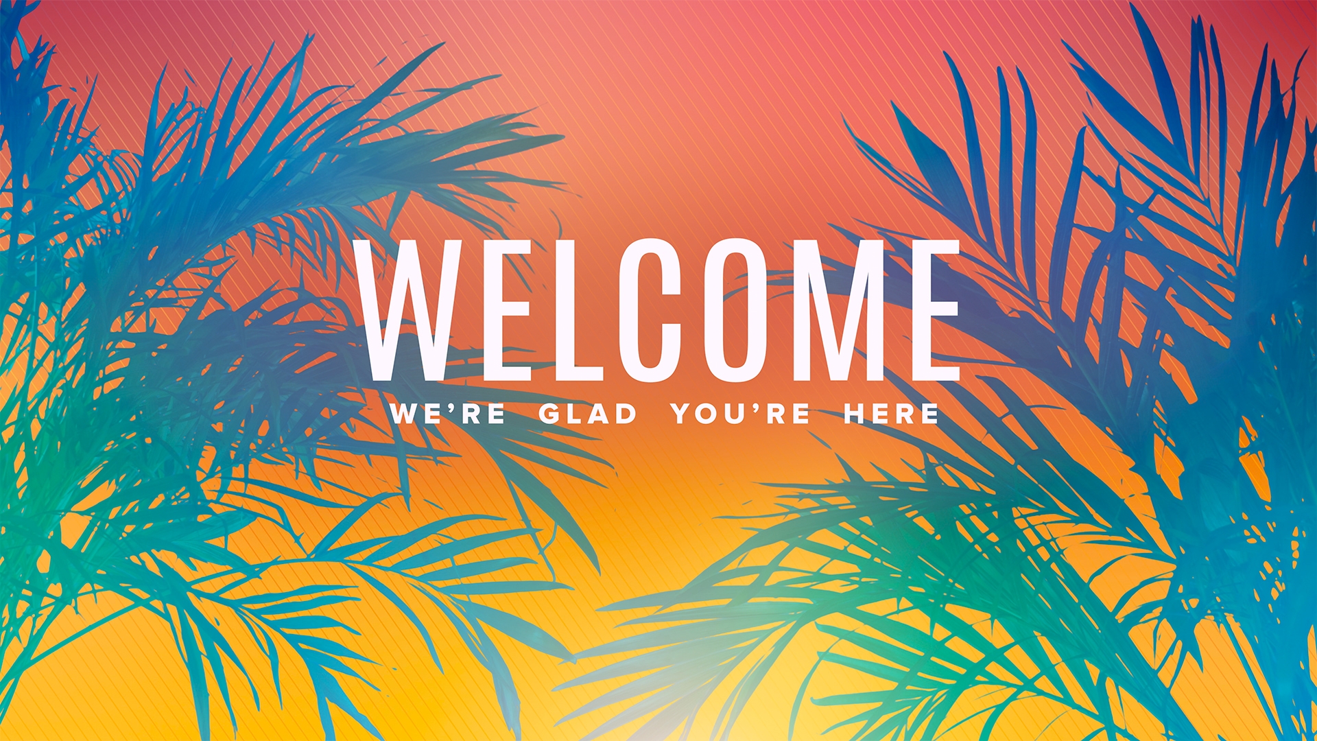 Colorful summer welcome motion title over bright colorful summer gradients with real flowing palms.