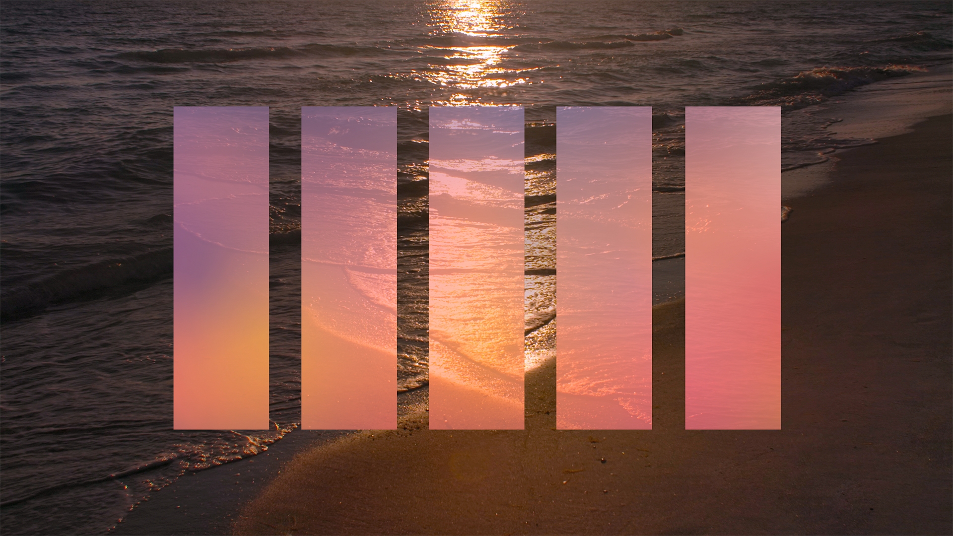 Beach and ocean worship background with geometric overlay.
