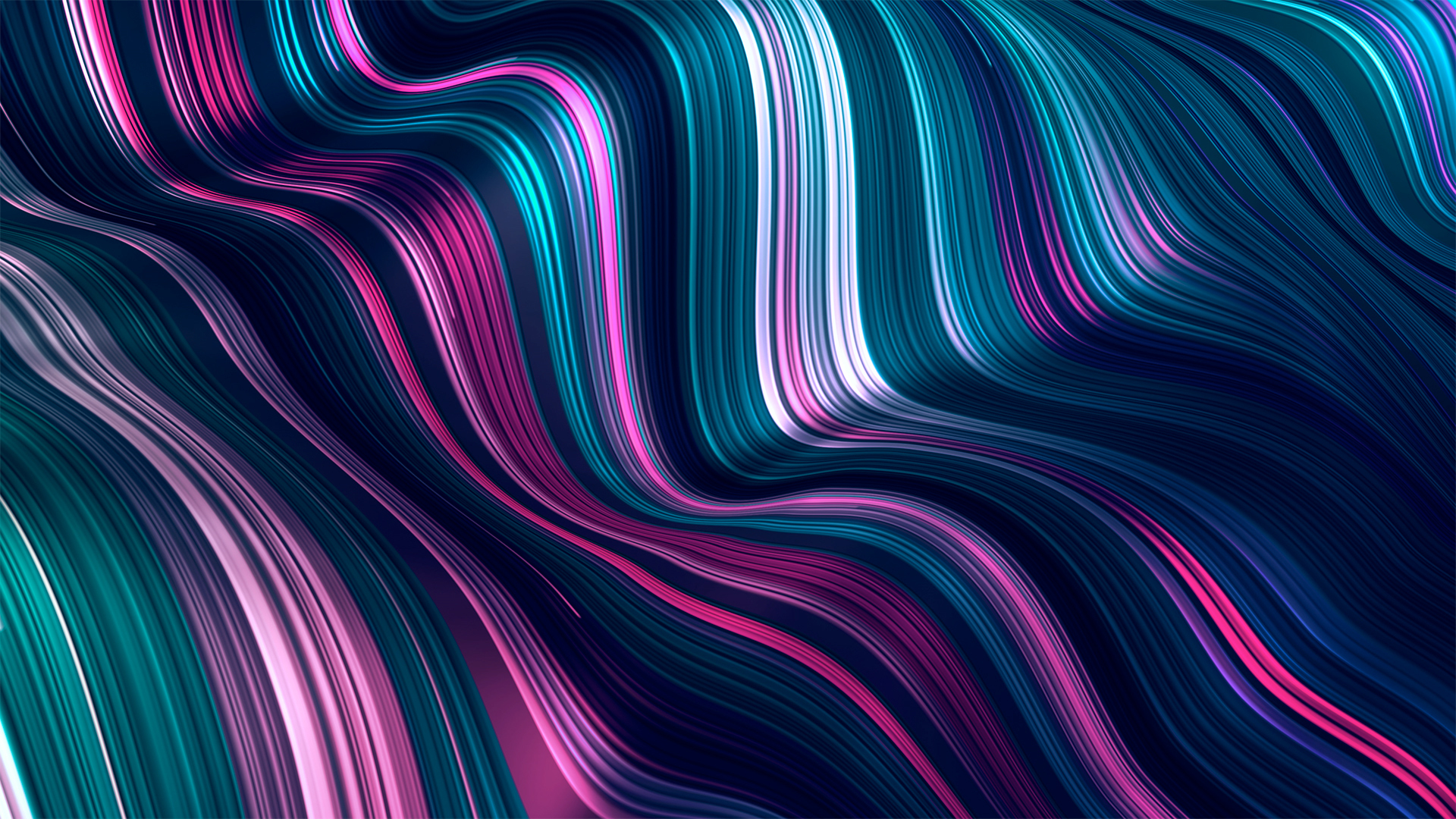 Wavelength gradient flow line waves in 3d depth with bright colorful fractal bars and vibrant line particles.