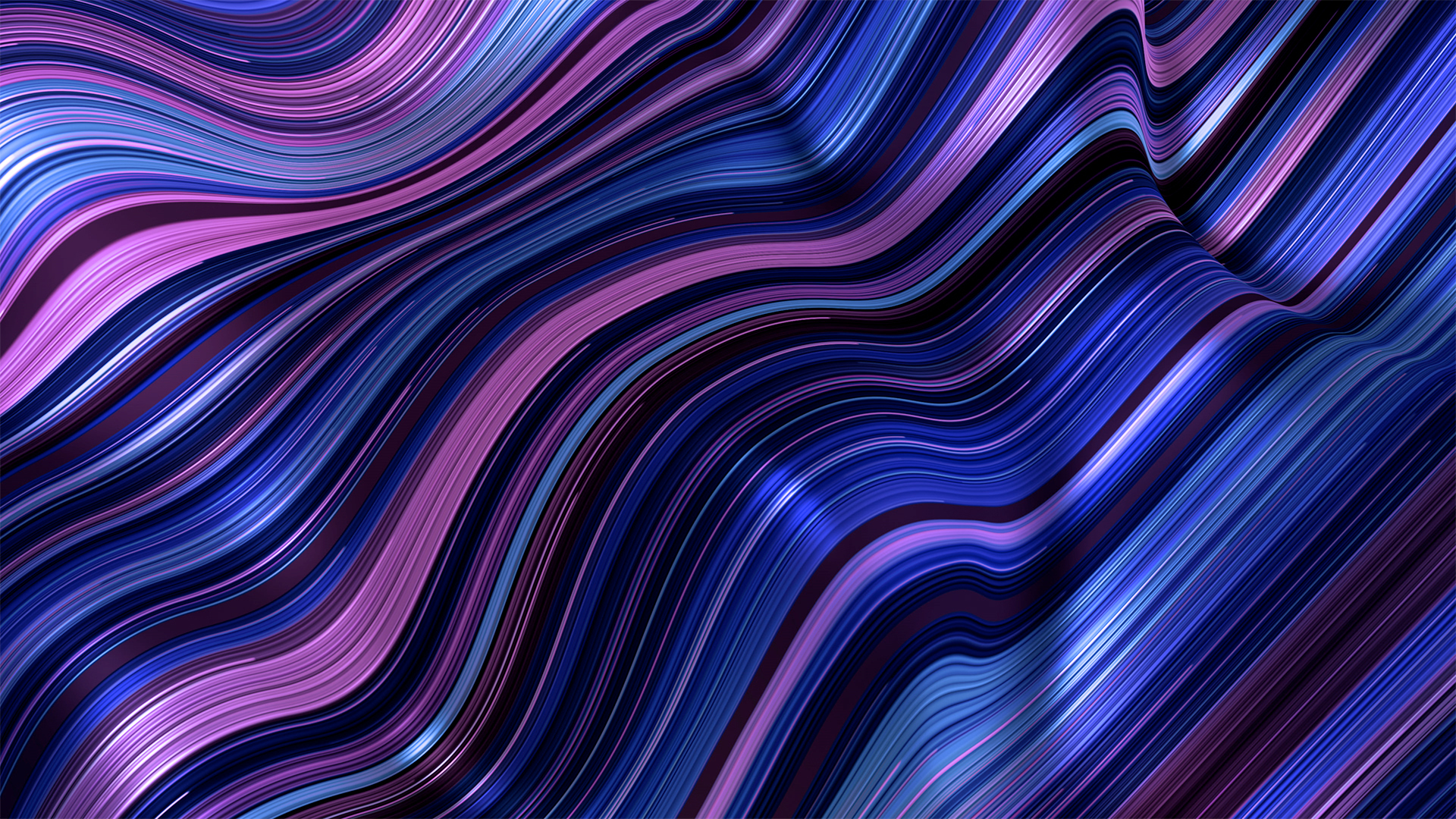 Wavelength gradient flow line waves in 3d depth with bright colorful fractal bars and vibrant line particles.