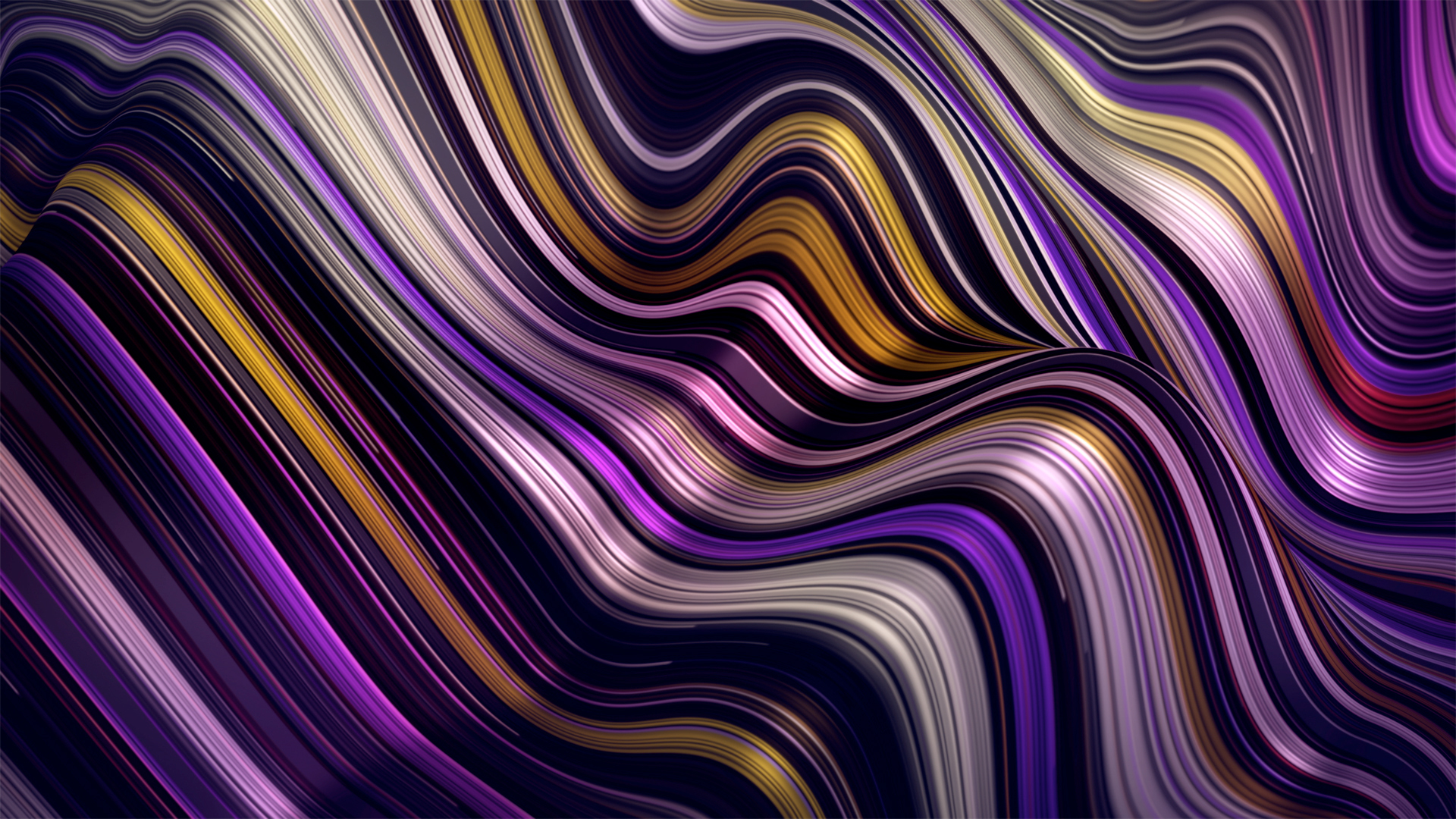 Wavelength gradient flow line waves in 3d depth with bright colorful fractal bars and vibrant line particles.