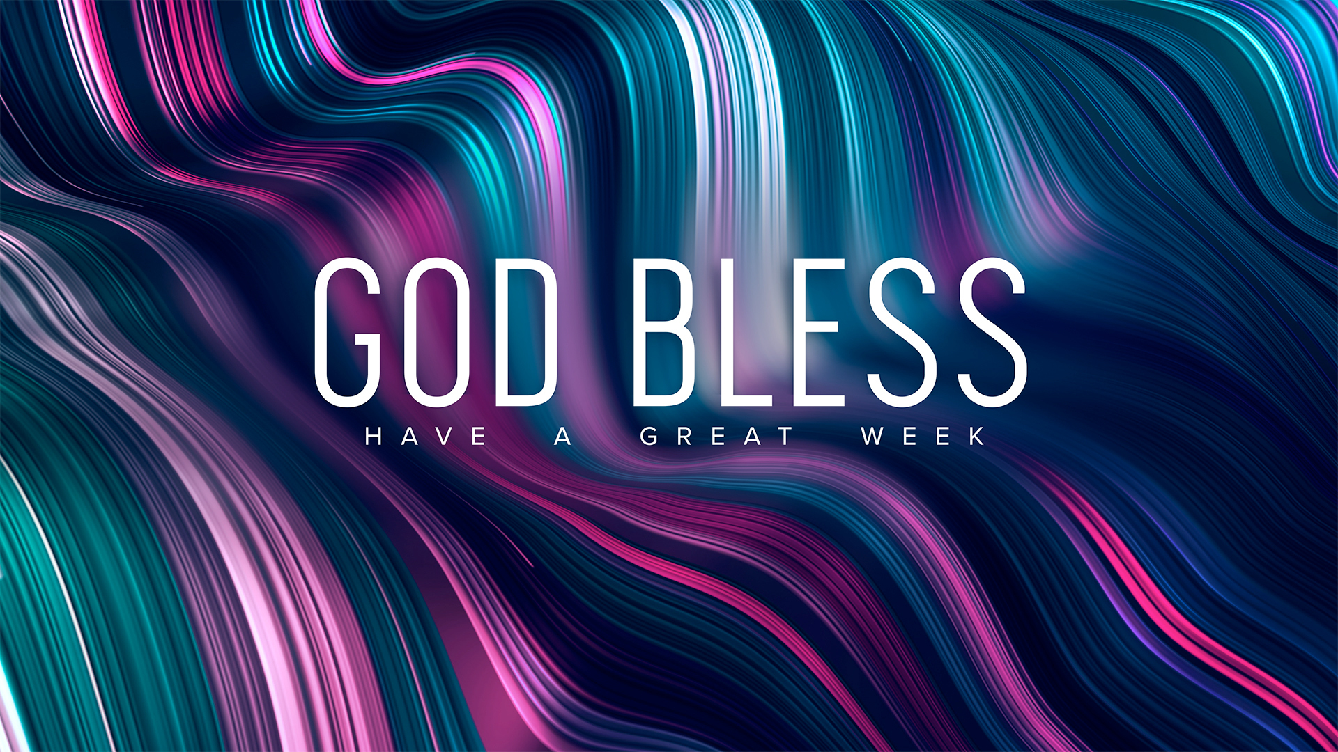 Wavelength service close title over gradient flow line waves in 3d depth with bright colorful fractal bars and vibrant line particles.